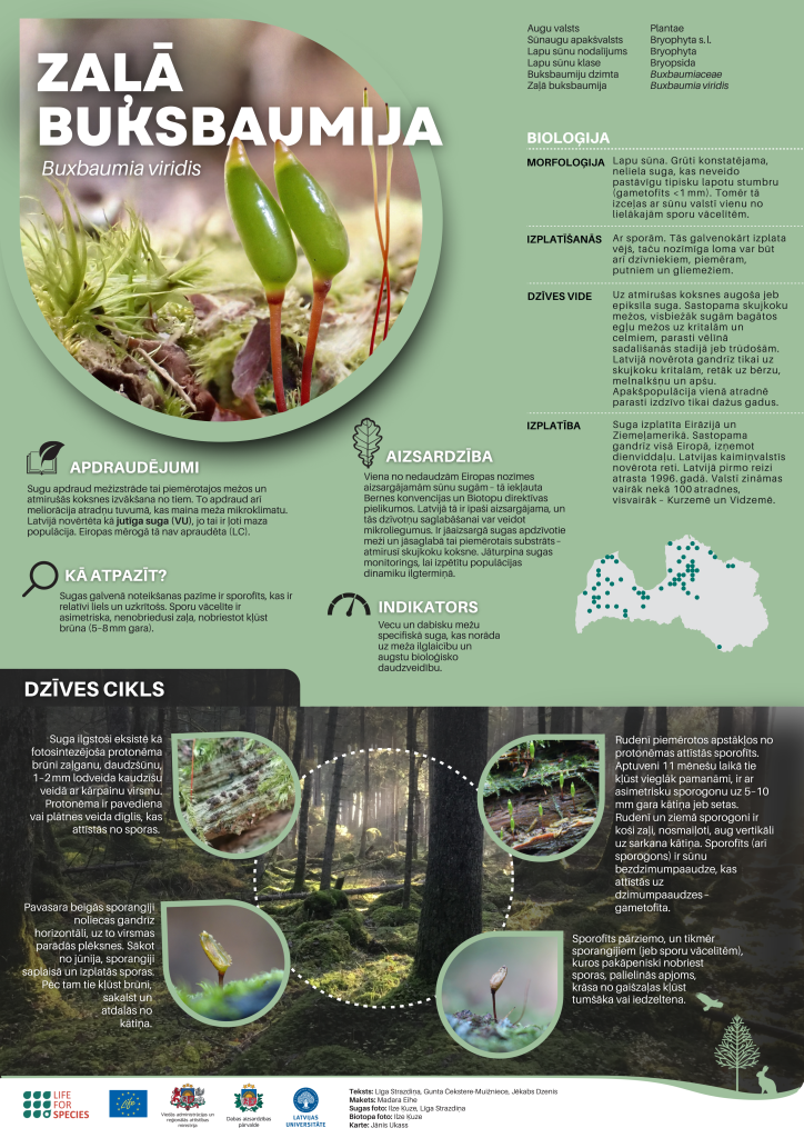 Gada izskaņā, novembra un decembra mēneša sugas godā ceļam zaļo buksbaumiju (Buxbaumia viridis) - nelielu, grūti konstatējamu sūnu, kas kalpo kā vecu un dabisku mežu indikatorsuga.