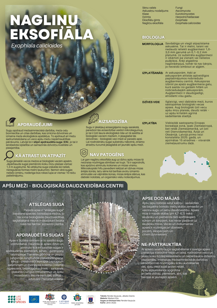 Janvāra un februāra mēneša sugas godā šoreiz celsim kādu savdabīga paskata sēni, kas atrodama vecos mežos ar bioloģiski vecām apsēm - nagliņu eksofiālu (Exophiala calicioides).