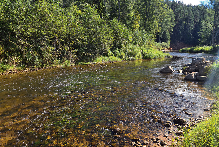 Summary. Atlantic salmon – Salmo salar. The natural range of the species extends from the river basins of the North Atlantic and Baltic Sea to the Iberian Peninsula. It is also found in the western Atlantic. In Latvia, it is found in 37 rivers, but wild salmon spawning regularly occurs in 13 rivers. The EOO is 34,556 km2, and the AOO is 488 km2. In Latvian salmon rivers, the overall stock status remains insufficient to support a sustainable regional population and is characterised by large annual fluctuations; smolt production is consistently below the target of at least 75% of its potential. In the River Salaca, the most productive wild salmon river in Latvia, there have only been four productive generations (at least 75% of the smolt production potential) since 2005. In other salmon rivers, smolt production is less than 5% of potential in most years. Despite fishing regulation and intensive supplementary releases of reared salmon in mixed salmon rivers, the overall status of the regional population has not improved, probably due to continuous habitat degradation in rivers (overgrowth, sediment accumulation) and possibly also due to poorer feeding success at sea. Habitat mapping data show that the decline in habitat quality at the national level is continuous and exceeds 30% over three generations (15 years). The species is therefore assessed as Vulnerable (VU). It is an anadromous, pelagic, coldwater fish species, spawning and juvenile development take place in the rapid sections of rivers, while the main feeding, growth and maturation take place in the sea. Spawning occurs in rivers where water temperatures exceed 10 °C for at least three months of the year, but do not exceed 20 °C for more than a few weeks in summer. Salmon is a species of EU importance and protected species in Latvia, for which micro-reserves can be established to protect spawning grounds and for which harvest restrictions have been established in Latvian waters. The main way to improve the status of salmon is to increase the area of habitats suitable for spawning and juvenile development and to increase their accessibility for migration from the sea. The status of the regional salmon population can also be improved by eliminating illegal catches.