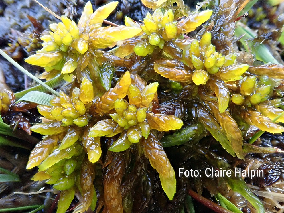 Summary. Cow-horn bog-moss – Sphagnum auriculatum. A widespread moss in western and central Atlantic Europe (the UK, Ireland, Denmark, the Netherlands, Belgium and France), but becoming rarer to the south and north reaching the north of the Scandinavian Peninsula. It was first found in Latvia by K. R. Kuppfer in 1913. A rare species in Latvia. In the last 50 years it has been found in less than 20 localities, mainly in Kurzeme and Vidzeme. EOO is 17,870 km2, and AOO is 64 km2. The regional population of the species in Latvia is small and its trend is unknown. In Latvia, the species grows in forests on waterlogged mineral soils, shallow grass fens, in nutrient-poor lakes – both along the shores and in the water near the shore, as well as in transition mires, wet depressions in Molinia meadows, wet heathlands, dunes, and inter-dune mires. The species is threatened by the drainage and use of mires for peat extraction, as well as the eutrophication of oligotrophic, mesotrophic, and semi-dystrophic lakes. In Latvia, it is assessed as Vulnerable (VU) due to its small AOO and a projected continuous decline in both the AOO and habitat quality. The species should be included on the list of protected species of Latvia. The species is mainly found in protected nature territories – the “Ances purvi un meži”, “Sakas grīņi” and “Stiklu purvi” Nature Reserves, the Slītere National Park, the “Pape” Nature Park. Protection of the localities of the species should be ensured and monitoring and studies on the population size, distribution and trends should be carried out.