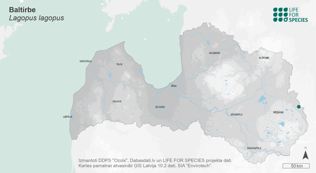 Summary. Willow Grouse − Lagopus lagopus. In Latvia, it seems that the distribution was already declining between 1980–1984 and 1985–1989, but comparisons are hampered by significant differences in surveying the area. In the period from 2000 to 2004, the species was only recorded at two sites, and in 2013–2017 – at one site. No probable or confirmed breeding has been registered in the 21st century. Since 2012, the species has only been recorded at one site; therefore, its AOO is 4 km2, while the EOO cannot be calculated. The breeding population is estimated to be 0–1 pairs (0–2 adult individuals). The population is stable in the short term (given the fact that the species has almost been extinct for a long period of time), but it is declining in the long term. The species is found in raised bogs, transitional mires and fens. Current threats to the Latvian population could include: ecosystem degradation due to habitat shift and climate change. The legal status of protected species needs to be maintained in Latvia. A targeted inventory of raised bogs, especially in the eastern part of Latvia, is needed to clarify the population size of the species. The conservation of these bogs and the prevention of disturbance must be ensured.