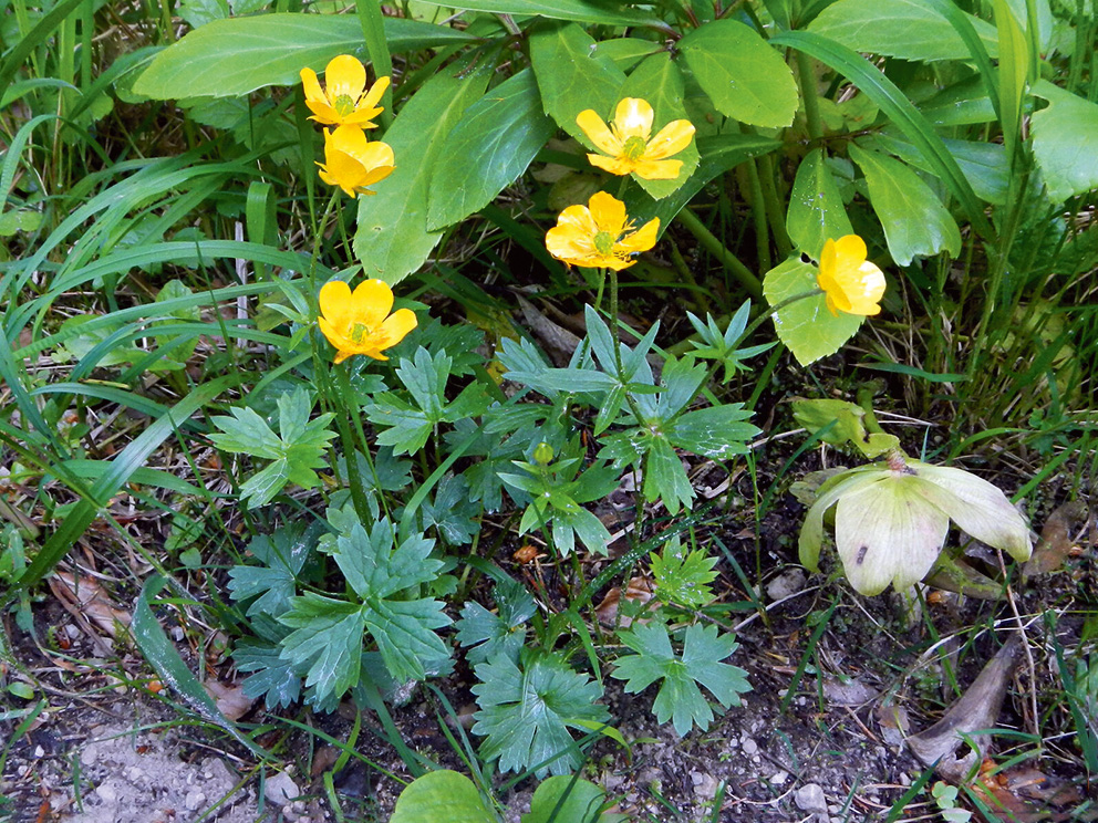 Morfoloģija un bioloģija. Daudzgadīgs 30–40 cm augsts lakstaugs. Stublājs stāvs, zarains, rievains, klāts ar skrajiem, iedzelteniem matiņiem. Saknenis īss, resns, ar bārkšu saknēm. Apakšējās lapas ar garu kātu, trīsstaraini šķeltas vai dalītas, blīvi pieguloši matainas, 5–10 cm garas, aptuveni tikpat platas, vidējais lapas plātnes segments rombveida, trīsdaivains, malējie segmenti šaurāki, divdaivaini. Augšējās stublāja lapas sēdošas, šauri trīsstarainas. Ziedi lieli, 2–3 cm diametrā. Kauslapas atstāvošas, matainas, divreiz īsākas nekā vainaglapas. Vainags gaišdzeltens. Ziedgultne mataina. Auglis – ieapaļš riekstiņu kopauglis, riekstiņi kaili, ar garu, ieritinātu knābīti. Zied jūnijā un jūlijā (Tutin, Chater 1993; Tabaka 2003).
