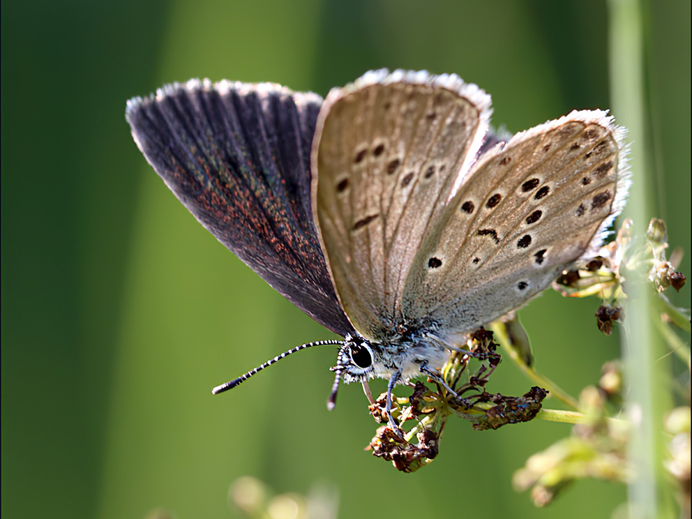 Summary. Alcon blue – Phengaris alcon. A transpalaearctic species, distributed in Europe from the Iberian Peninsula to the southern part of the Scandinavian Peninsula and in Asia to southern Siberia. It is found in Estonia, Lithuania and Belarus, but only in isolated localities and rarely (Ivinskis, Rimšaitė 2018; Pisanenko et al. 2019; Синев 2019; Jürivete, Õunap 2020). In Latvia, the species is found in the northern part of its range and was first found in 2013 (Šulcs, Savenkov 2018). The EOO cannot be calculated due to the lack of data and the AOO is 4 km². There is a small subpopulation in the “Ādaži” Protected Landscape Area. It was also found near Inčukalns, but soon after its first detection, the species disappeared due to habitat changes. The species occurs in moist meadows with Gentiana pneumonanthe (outside Latvia it is also found on G. cruciata). It is an Endangered (EN) species in almost all European countries where it occurs, threatened by the transformation of low-fertility grasslands – fertilisation, intensive grazing, too early mowing, drainage, afforestation, eutrophication – which contribute to the loss of this food plant (Wagner 2022). The species is assessed as Endangered (EN) in Latvia, as the subpopulations are very small, and its food plant is very rare. It is not included on the list of species of EU importance or national lists of protected species. It is proposed to be included on the list of protected species for which micro-reserves can be established. The existence of the species depends on its food plant which is very rare and endangered in Latvia. The habitat needs to be managed to meet the ecological and biological requirements of the species and its food plant – preservation of the hydrological regime, mowing the habitat in late autumn (September), for example, once every two years, to reduce overgrowth. For further conservation planning of the species, studies on the size, distribution and trends of the regional population, as well as threat factors, are needed.