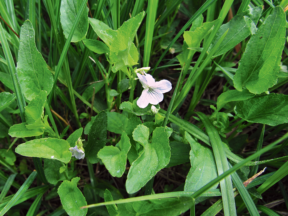 Morfoloģija un bioloģija. Daudzgadīgs 10–25 cm augsts lakstaugs. Stublājs viens vai vairāki, stāvi. Rozetes lapu nav. Stublāja lapas 2–4 cm garas, augšupstāvošas, šauri olveida līdz trīsstūraini lancetiskas, ar nošķeltu vai sekli sirdsveida pamatu. Pielapes lineāri lancetiskas, līdz 20 mm garas. Ziedi pa vienam garā kātā lapu žāklēs. Ziedneši garāki nekā stublāja lapas. Vainags balts vai bālzils ar tumšāk zilām dzīslām. Piesis strups, zaļgans. Zied maijā un jūnijā. Vasaras vidusdaļā veido arī kleistogāmus ziedus (Gavrilova 2003; Wind 2010; Priedītis 2014; Porter, Foley 2017). Paaudzes ilgums ir 15 gadi (Solstad et al. 2021).