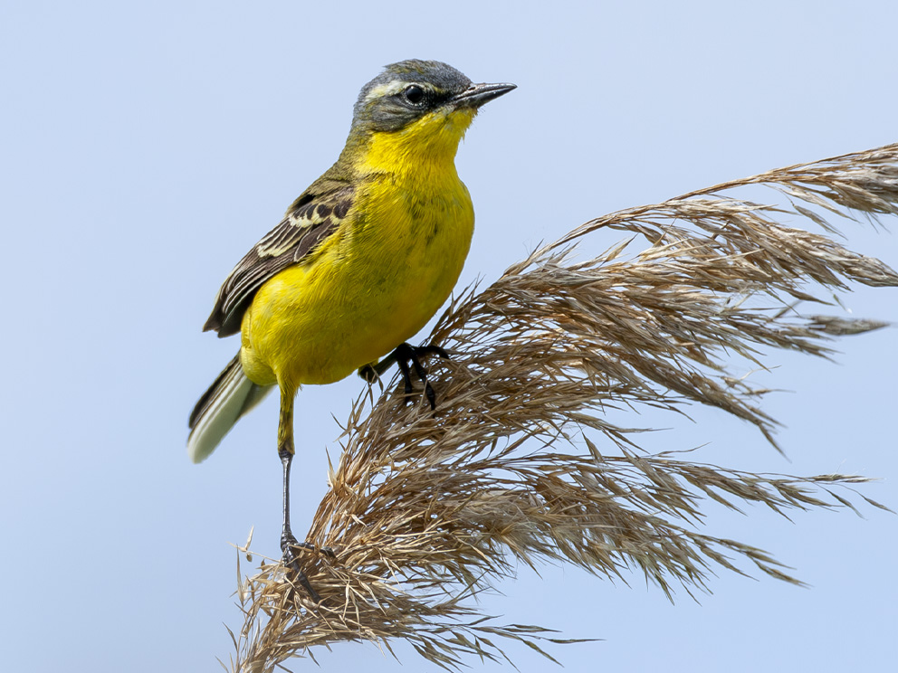 Summary. Western Yellow Wagtail − Motacilla flava. In Latvia, the distribution declined between 1980–1984 and 2000–2004; the decline continued between 2000–2004 and 2013–2017 as well. The AOO of the breeding population is 3,132 km2, the EOO – 79,039 km2. The breeding population is estimated at 8,527–25,400 pairs (17,054–50,800 adult individuals). The population is declining in the long term, while the short-term trend of the population is unclear. The population has declined by 54% within ten years. Inhabits a variety of wet, shrubby and tussocky grasslands and pastures, mainly near various wetlands or on the seashore, as well as open raised bogs. The species is threatened by increasing agricultural intensity, including the drainage of wetlands, conversion of grasslands to arable land, pesticide use and fertilisation. Monitoring of the population of the species is ongoing. The species needs to be included on the list of protected species of Latvia. Extensive grassland management, especially the conservation of wet grasslands, is required to protect the species.