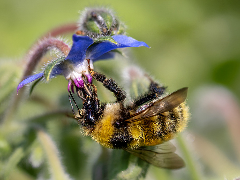 Summary. Northern yellow bumble bee – Bombus distinguendus. In Europe, the species is widespread mainly in its central and northern parts. Not found in Southern Europe. The species is rarely found in Latvia, which is related to the lack of research rather than to the actual rarity of this species. In the 20th century, it was observed at several sites and reported fairly often (Tumšs 1975). Not enough data are available to calculate the EOO. The potential EOO most likely corresponds are the land area of Latvia. The AOO is 16 km2, but the potential AOO is at least five times higher. The European regional population is in decline and B. distinguendus has become rarer in several countries over the past two decades (Rasmont et al. 2021). In Europe, the species is assessed as Vulnerable (VU) (Nieto et al. 2014). Studies on the size, status and trends of the Latvian regional population have not been carried out. In Europe, the species is mainly associated with open habitats – pastures, shrublands, forest-steppe (Rasmont et al. 2021; SLU Artdatabanken 2022), also found in urban environments. Since the species is rarely found in Latvia, there is little data available on the habitat preferences. In the vicinity of Rīga, the species was found in open, warm and xeric habitats. It is found that in Europe the species is declining due to climate change. The long-term model predicts its disappearance from many currently inhabited areas, and by 2100, the habitat suitable for the species will only remain available in Scandinavia and Finland (Rasmont et al. 2015). The main threat has not been identified, and the species is assessed as Data Deficient (DD). The species is not protected in Latvia, and legal protection status is not required for it. There are no known localities of B. distinguendus in the protected nature areas. It is necessary to study the species in its localities and search for it in potentially suitable habitats to clarify the distribution, ecology, threats and define the protection measures.