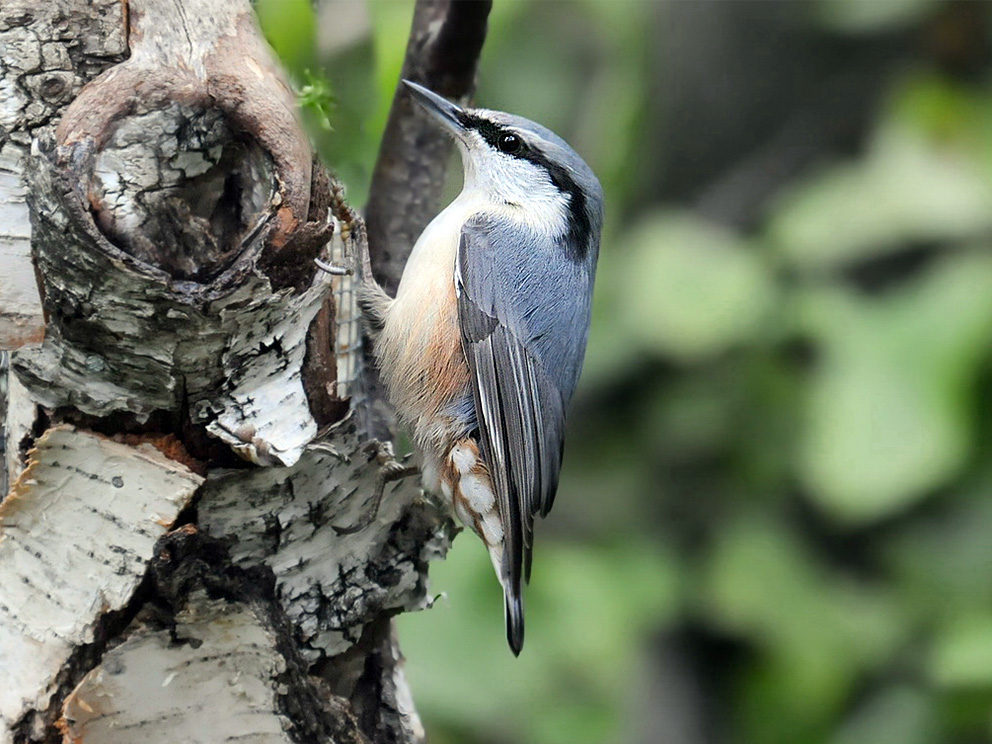 Summary. Eurasian Nuthatch − Sitta europaea. In Latvia, the distribution increased between 1980–1984 and 2000–2004, while no considerable change in distribution occurred between 2000–2004 and 2013–2017. The AOO of the breeding population is 14,332 km2, the EOO – 86,708 km2. The breeding population is estimated at 74,696– 147,394 pairs (149,392–294,788 adult individuals). The population is increasing in the long term, and the short-term trend is classified as stable, however, recent estimates suggest that the population has declined by 41% over ten years. Inhabits deciduous and mixed forests, parks and gardens with large trees (oaks, etc.). The threats have not been studied in Latvia, but it is likely that logging is a significant threat. It is also believed that the species is negatively affected by the loss of semi-natural grassland habitats and the clearing of avenues. Monitoring of the population of the species is ongoing. The legal status of the species does not need to be changed in Latvia. Conservation of the species requires the preservation of large, hollow trees by means of forest management and the cessation of logging during the breeding season.