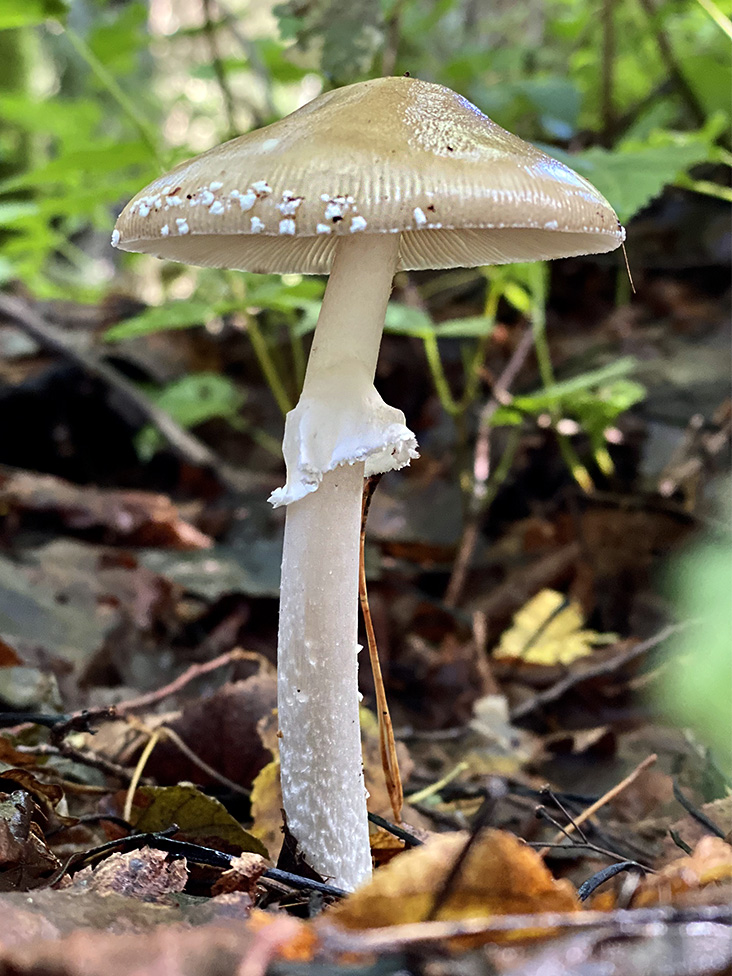 Summary. Pale amanita – Amanita eliae. Found mainly in Europe and very rare in North America. It is very rare in the temperate zone in Europe. It is very rare in Latvia with five localities recorded between 1991 and 2022. The historical species locality in Moricsala is also assumed to exist. The EOO is 14,670 km2, and the AOO – 24 km2. There is a lack of data on the regional population size and changes in Latvia. The number of mature individuals in Latvia probably does not exceed 250. It is mycorrhizal, mainly with oak, and found mainly in old mixed broadleaved forests. Possible habitats – parks and other green areas. The species is mainly threatened by logging and a lack of habitats, mainly old, natural forests. It is assessed as Endangered (EN) due to low AOO and a low number of mature individuals; a decline in occupied area and habitat quality is expected. It is a protected species in Latvia. The legal status of the species in Latvia must be maintained. Most localities are found in protected nature areas, e.g. the “Augšdaugava” Protected Landscape Area, the Gauja National Park, the “Talsu pauguraine” Nature Park, and the Krustkalni and Moricsala Strict Nature Reserves. The conservation measures are mainly related to the protection of suitable habitats – deciduous (oak) forests. Further searches for new localities in Latvia are needed to estimate the regional population size, as well as studies on distribution and ecology.
