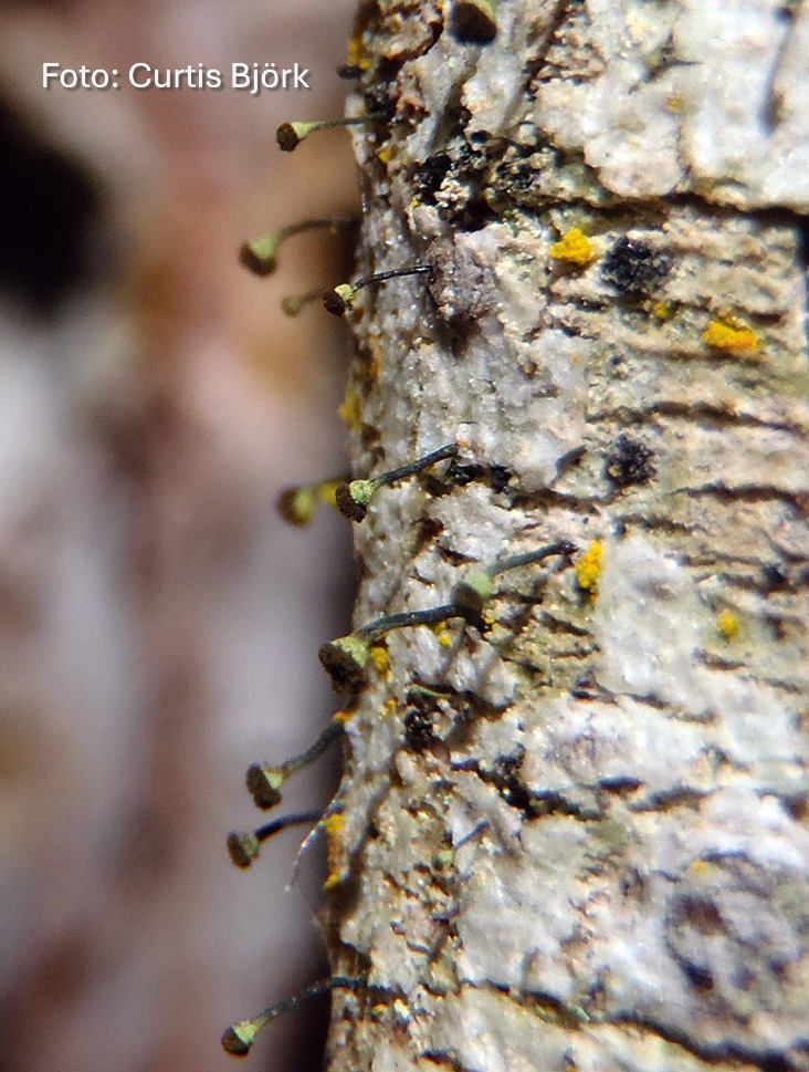 Summary. Chaenotheca laevigata is widely distributed in Northern Europe, and less common in other parts of Europe. Has been found in North America, and is rare in Eastern Asia. There is one locality in Latvia – it was found in Vidzeme Region, near Limbaži, in 2019. The EOO and the AOO are 4 km2. An epixylic species. Mostly grows on standing dead wood, including stumps (conifers, less commonly broad-leaves) in old natural forests. It grows in forests with high and stable humidity. The species is threatened by forest management activities that involve the removal of dead wood or alter the microclimate. Assessed as a Critically Endangered (CR) species due to the small AOO and EOO and the low number of locations, a decline in habitat quality is expected, and the number of mature individuals does not exceed 50. The species must be included on the list of protected species. The only locality is outside protected areas. The locality of the species must be protected, and old coniferous and mixed forests, including standing dead wood, must be conserved, and activities that alter the forest microclimate (logging, drainage, etc.) must be avoided.