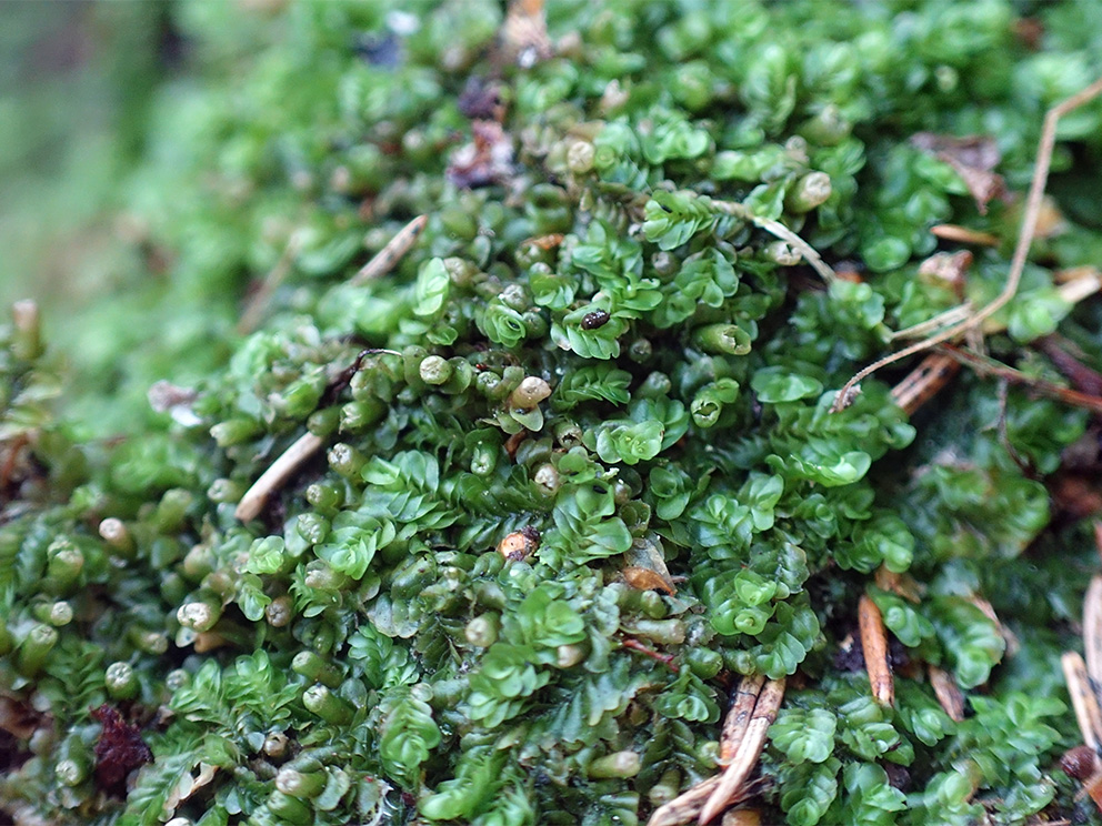 Summary. Long-leaved flapwort – Liochlaena lanceolata. Liverwort. The species ranges from France to Russia and from Greece to Scandinavia. It was first found in Latvia by A. Bruttan in 1887. It has been found in more than 300 localities over the last 50 years scattered over most of the country. EOO is 76,773 km2, and AOO is 1,144 km2. The size and trends of the regional population of the species have not been studied in Latvia, but the number of localities has recently increased. In Latvia, the species usually grows on heavily decayed wood in swamp forests and swamps, less often on wet, shaded sandstones. The species is threatened by clear-cutting in old and natural forests. Overall, it is assessed as Near Threatened (NT). A protected species in Latvia; micro-reserves can be established to conserve its habitats. The legal status of the species must be maintained. The species has been found in several protected nature territories – the Moricsala Strict Nature Reserve, the “Aizkraukles purvi un meži”, “Dvietes dumbrāji”, “Gruzdovas meži” Nature Reserves etc. Protection of the localities and habitats of the species should be ensured, and studies on the population size, distribution and trends should be carried out.