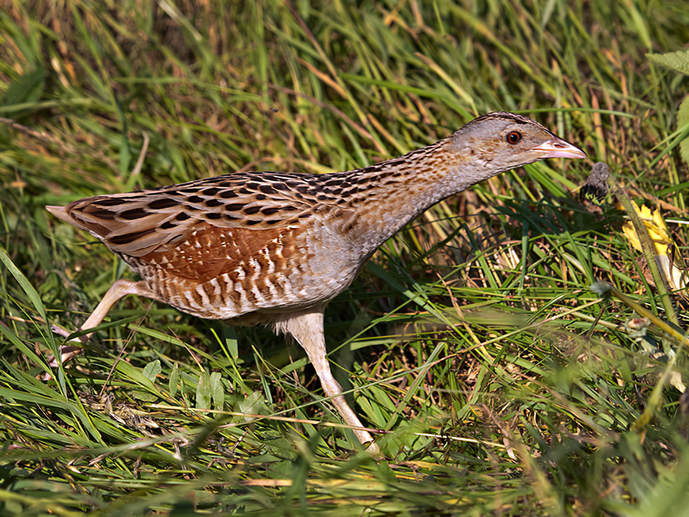 Summary. Corncrake − Crex crex. In Latvia, the distribution increased between 1980–1984 and 2000–2004 and declined between 2000–2004 and 2013–2017. The AOO is 11,556 km2, the EOO – 87,316 km2. The breeding population is estimated at 30,874–111,512 males (61,748–223,024 adult individuals). The population is increasing in the long term, but declining in the short term. Over three generations, the population has declined by 43%. Inhabits a variety of wet meadows, pastures, grasslands, winter crop fields, occasionally apple orchards, and less frequently overgrown row crops and clearings. In Latvia, the increase in agricultural intensity, including the decrease in grassland areas and the death of juveniles through mowing, have been identified as major factors negatively affecting the species. On the other hand, the species is also threatened by the abandonment of farmland and overgrowth thereof with shrubs and trees. It is likely that some of the birds breeding in Europe are caught in nets in Egypt during their autumn migration. The species can fall prey to domestic cats and Neogale vison, as well as local predators. The species is negatively affected by disturbance caused by recreational activities and roads. Monitoring of the population of the species is ongoing. The legal status of protected species needs to be maintained in Latvia. Conservation of the species requires the maintenance and restoration of grasslands, payments to farmers for the maintenance of C. crex habitats and education on species-friendly farming practices.