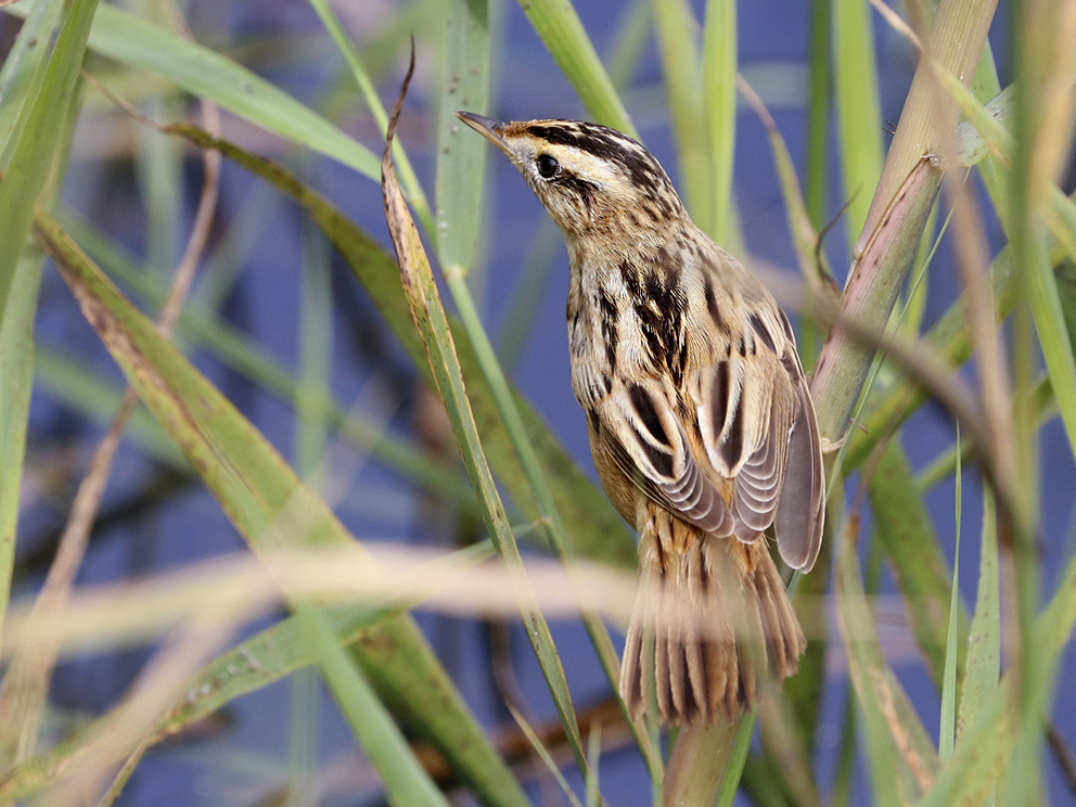 Summary. Aquatic Warbler − Acrocephalus paludicola. The first and only breeding record in Latvia was made in 1940. Cases of possible breeding were recorded in 2000–2002 and 2004. Other known observations mainly involve young birds caught for ringing in Lake Pape and Lake Liepāja in the summer-autumn season. Breeding in Latvia cannot be completely ruled out; however, if breeding of the species occurs, the number of breeding birds is small. The species inhabits vast, open fens with tussocks, with little or no shrubs, mainly in floodplains of rivers or near lakes; the threats have not been studied in Latvia, but the threats mentioned in the European assessment are described here. The most important threats to the species are loss of breeding habitat due to drainage, enclosure of floodplains by dams, unfavourable water management and straightening of rivers. The cessation of traditional management of fens, allowing them to overgrow with reeds and shrubs, also contributes to habitat degradation. Fires in spring and summer can destroy birds and their nests and burn the upper peat layer. Potential threats to wintering areas include agriculture, irrigation, drought, drainage of wetlands, intensive grazing, overgrowth with shrubs, desertification and salinisation of irrigated soils. The legal status of protected species needs to be maintained in Latvia. The conservation of the species requires the preservation and appropriate management of wet grasslands and fens, including late mowing.