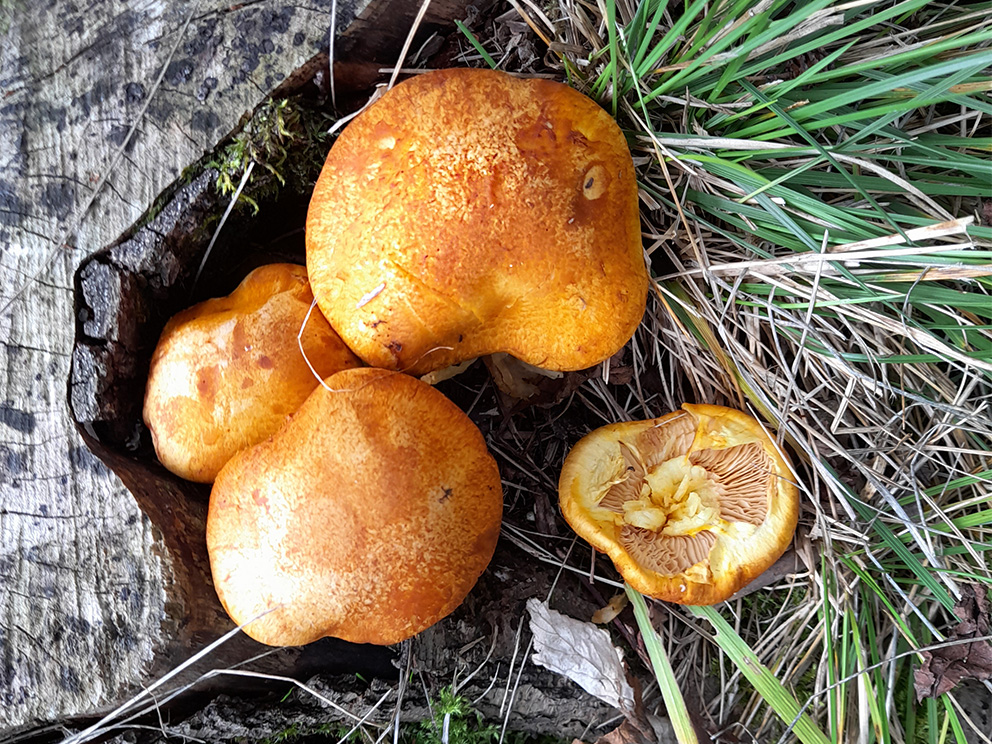 Summary. Spectacular rustgill – Gymnopilus junonius. Found in Europe, North America, Australia, South Africa, parts of Asia, and South America. It is common in temperate zone in Europe, but rare in the southern subboreal zone. It is rare in Latvia with 13 currently known localities in different regions. The EOO is 22,389 km2, and the AOO – 52 km2. No information is available on the distribution changes due to a lack of research. There are insufficient data on the regional population size and changes. The number of mature individuals may not exceed 1,000. It is a wood saprotroph. It is found in deciduous and mixed forests with high biodiversity, mainly in wet places and in old parks on dead wood of deciduous, less often on coniferous trees; often on the roots of living trees or at the base of trunks. The species is threatened by possible future deterioration of habitat quality due to intensive logging; it is affected by the removal of old living trees, clear-cutting, forest management that reduces the proportion of old forests. It is assessed as Vulnerable (VU) due to a small regional population. The species is not listed as a species of EU importance and is not protected in Latvia; there is no need to change the legal status of the species. It occurs in protected nature areas – the Gauja and Slītere National Parks, and the “Jaunciems” Nature Reserve. The conservation of the species requires the preservation of suitable habitats – undisturbed deciduous and mixed forests, as well as the preservation of dead wood of deciduous trees in old parks. Research is needed on the size, distribution and trends, life cycle and ecology of the Latvian regional population.