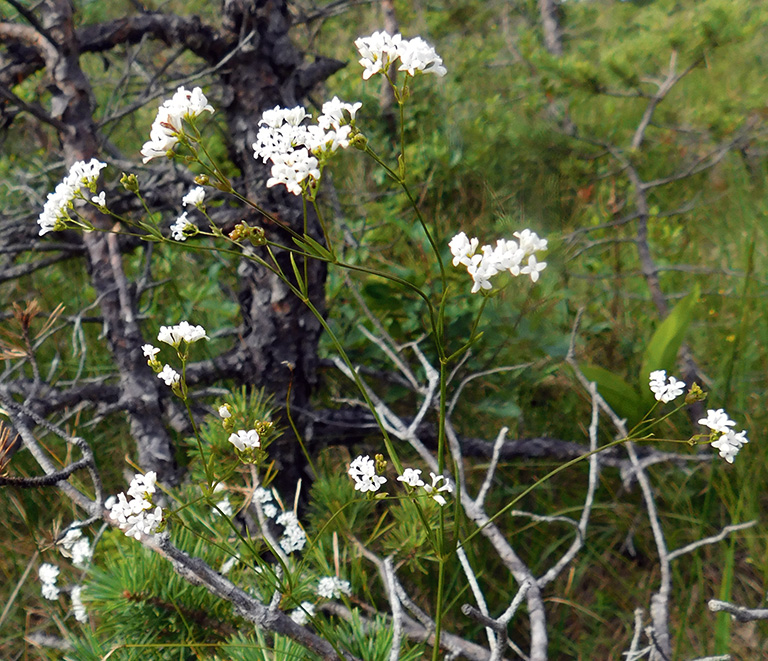 Morfoloģija un bioloģija. Daudzgadīgs 25–50 cm augsts lakstaugs. Stublājs stāvs, četršķautņains. Lapas un pielapes lineāras, kopā pa 4–6 (7) neīstos mieturos. Ziedi skarveidīgos saliktos dihāzijos. Vainags piltuvveidīgs, vainaglapas trīs, sākumā baltas, vēlāk rožainas, līdz pusei saaugušas. Auglis – divu riekstiņu skaldauglis, riekstiņi spīdīgi, grumbuļaini. Zied jūlijā un augustā. Aug grupās. Kalcifīts (Kabucis 2003). Paaudzes ilgums ir desmit gadi (Solstad et al. 2021).