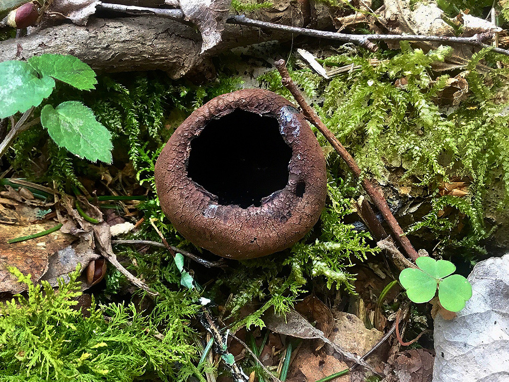 Summary. Devil’s urn – Urnula craterium. Distributed in Europe, North America, and Asia. It is relatively rare in Europe, mainly in the nemoral zone. It is relatively rare in Latvia, with 32 known localities in different regions of the country. The EOO is 34,716 km2, and the AOO – 128 km2. No information is available on the distribution changes due to a lack of studies; insufficient data on the regional population size and changes. The number of mature individuals is probably less than 250. It is a wood saprotroph and mainly found in old deciduous forests and parks on fallen, decaying oak and hazel branches. The main threats are related to forest management, which reduces the proportion of old broadleaved (oak) forests. It is assessed as Endangered (EN) due to its small, fragmented AOO and a small regional population, and the expected potential decline in AOO. The species is not listed as a species of EU importance and is not protected in Latvia. It is proposed to be included on the list of protected species. It is found in protected nature areas, such as the Gauja National Park, the Krustkalni Strict Nature Reserve, etc. The protection of the species includes leaving decaying, fallen oak and hazel branches in deciduous forests. Studies on the population size, distribution and trends, life cycle and ecology are needed.