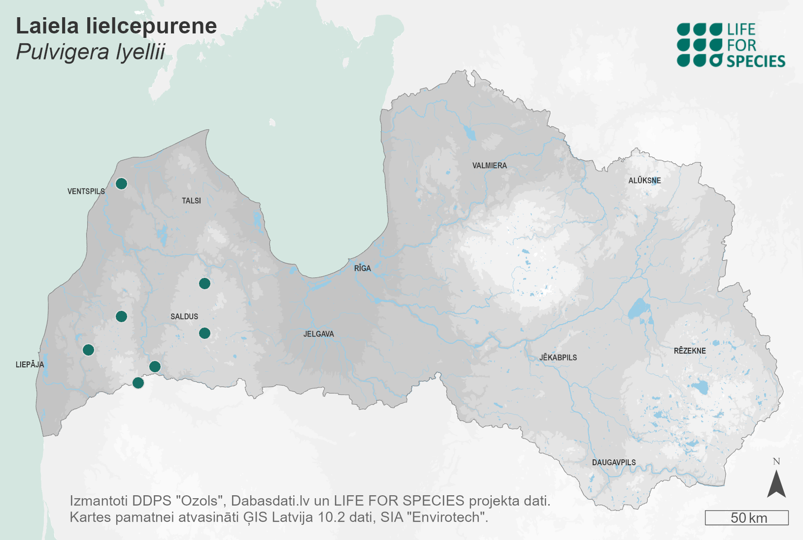 Summary. Lyell’s bristle-moss – Pulvigera lyellii. In Europe, the moss is distributed from the Scandinavian Peninsula and the British Isles to the Mediterranean Sea and the Iberian Peninsula. It was first found in Latvia by A. Apinis in 1930. A very rare species in Latvia, found at 12 sites in the western part of the country. The number of observations tends to increase and the species has a potentially wider distribution. EOO is 5,043 km2, and AOO is 32 km2. In Latvia, it is small, somewhat fragmented, but stable. The species is found on isolated deciduous trees along roadsides, in alleys, parks and, less frequently, in natural forests. The species is likely to be negatively affected by climate change and human activities such as forest management in its habitat, air pollution and fires. It is assessed as Vulnerable (VU) due to small AOO and a predicted continued decline in both the AOO and habitat quality. A protected species in Latvia. The legal status of the species must be maintained. The species has been found in the protected nature territories – the “Klāņu purvs” and “Cieceres ezera sala” Nature Reserves. Protection of the species’ localities should be ensured, and research on factors threatening the species should be undertaken.