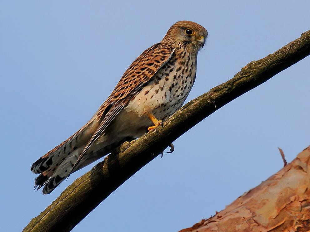 Morfoloģija un bioloģija. Baloža lieluma putns ar slaidiem, nosmailotiem spārniem un garu asti. Tēviņam galvas virsa un aste pelēka, mugura ķieģeļsarkana ar pilienveidīgiem brūniem plankumiem. Astes galā plata melna josla. Mātītei ķermeņa virspuse un aste ķieģeļkrāsā ar tumšākām šķērssvītrām. Abiem dzimumiem vēderpuse dzeltenīga ar brūniem pilienveida raibumiem. Izlūkojot medījumu, raksturīgi plivinās uz vietas ar izplestu asti. Pārtiek galvenokārt no sīkiem grauzējiem. Ligzdo citu putnu, galvenokārt vārnu, būvētās ligzdās vai ēku nišās u. tml. vietās. Dējumā 2–8 olas, gadā viens perējums. Mazuļi ligzdguļi. Gājputns, ziemo Dienvideiropā un Ziemeļāfrikā (LOB 1998).