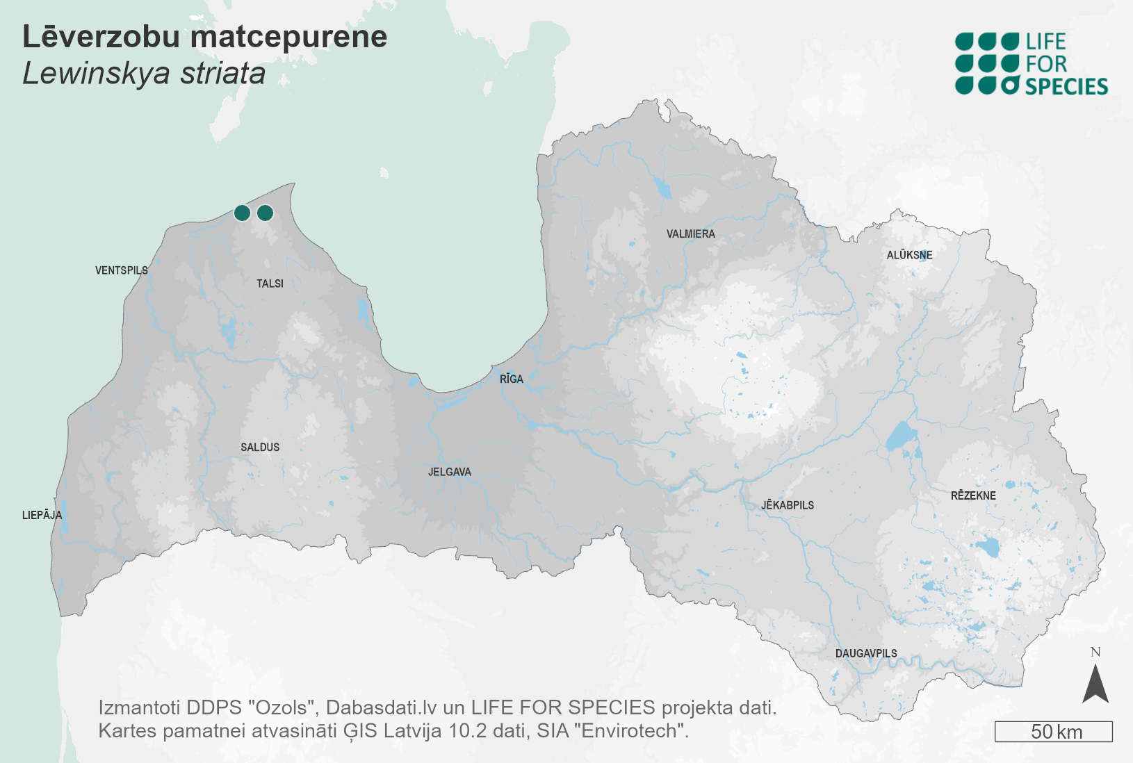 Summary. Shaw’s bristle-moss – Lewinskya striata. A widespread moss throughout Europe. Found in Iceland, the Caucasus, Turkey, northern Africa and Macaronesia, most of south-east European countries, also in North America, China and India. It was first found in Latvia by N. Malta in 1920. Only one long-term population of the species is known in Latvia in the lower slopes of the Blue Hills of Šlītere. The species has been recorded repeatedly at this site, indicating that the population is stable. Due to the lack of data, EOO and AOO cannot be calculated. It grows in woodlands and on rocks along roadsides. The species is likely to be threatened by human activities on the species’ localities and by climate change. The species can be negatively affected by air pollution and fires. It is assessed as Vulnerable (VU) due to its very small population. A protected species in Latvia. To protect its habitats, the possibility to create micro-reserves should also be considered. The only locality of the species in Latvia is in the Slītere National Park on the cliff of the nature monument – geological formation “Šlīteres Zilo kalnu krauja”. Studies on population and habitat trends should be carried out.