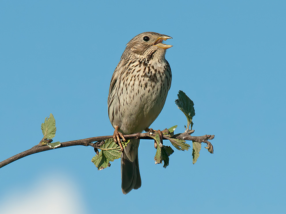 Summary. Corn Bunting − Emberiza calandra. Due to the rare occurrence, an objective assessment of distribution changes in Latvia is impossible. The AOO of the breeding population is 24 km2, the EOO – 7,174 km2. The breeding population is estimated at 0–1 pairs (0–2 adult individuals). The population is stable in the short term, while the long-term trend is unknown. Inhabits open countryside, including clearings. The species is threatened by increasing agricultural intensity, including an increase in winter crop areas and pesticide use. In the N part of its range (including Latvia), the species may be sensitive to climate extremes. The legal conservation status of the species in Latvia has to be maintained. The conservation of the species requires the provision of fallow and grassy fields.