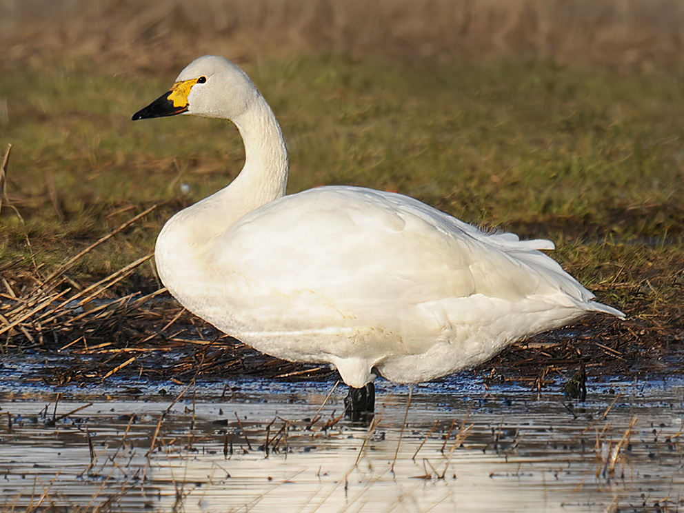 Summary. Tundra Swan − Cygnus columbianus. The AOO of the population migrating through Latvia is 892 km2, the EOO – 58,370 km2. The size of the population migrating through Latvia is unknown, but it is suspected to be less than 1,000 adult individuals. The population trend is also unknown. During migration, it is found on farmland, rivers, lakes, fish ponds, and seashores. The species is threatened by the degradation and loss of wetland habitats due to drainage, oil product pollution, peat extraction, changes in wetland management, burning and mowing of reeds, and eutrophication. Mortality of the species is caused by oil spills at the sites of feather moulting and migration stopovers, collisions with power lines and wind turbines, and lead poisoning (from lead shot and fishing weights). The species is hunted both legally and illegally. The species is susceptible to avian influenza. The legal status of protected species needs to be maintained in Latvia. The conservation of the species requires effective control of the ban on lead ammunition in wetlands. The use of fishing weights containing lead should be banned. Power lines, where they pose a threat to Cygnus spp., need to be equipped with elements that improve their visibility.