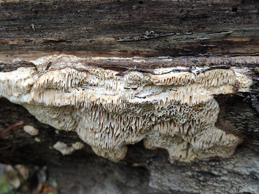 Summary. Honeyed porecrust – Flavidoporia mellita. Found in Eurasia. In Europe, it grows in the boreal and hemiboreal zones, and is best known in Scandinavia. It is relatively rare in Latvia, with approximately 80 known localities in different regions. The EOO is 51,709 km2, and the AOO – 256 km2. There are insufficient data on the regional population size and changes. The number of mature individuals is about 310. It is a wood saprotroph, causing brown rot. It grows on dead wood of aspen and willows - on fallen logs, and less frequently on standing dead trees. It occurs in old deciduous forests, mostly aspen, and in mixed forests rich in old trees and dead wood. The species is threatened by the reduction of old broadleaved forests and the lack of aspen logs in old forests. It is assessed as Vulnerable (VU) due to a very small regional population. Not included in the EU or Latvian lists of protected species. It is proposed to be included on the list of protected species in Latvia. Less than half of the regional population is found in protected nature areas, e.g. the Teiči and Krustkalni Strict Nature Reserves, the “Klešniku purvs” Nature Reserve and others. Old deciduous forests with aspen and the fallen logs they contain should be preserved in order to protect the species. Research is needed on the species’ distribution, ecology and threats.
