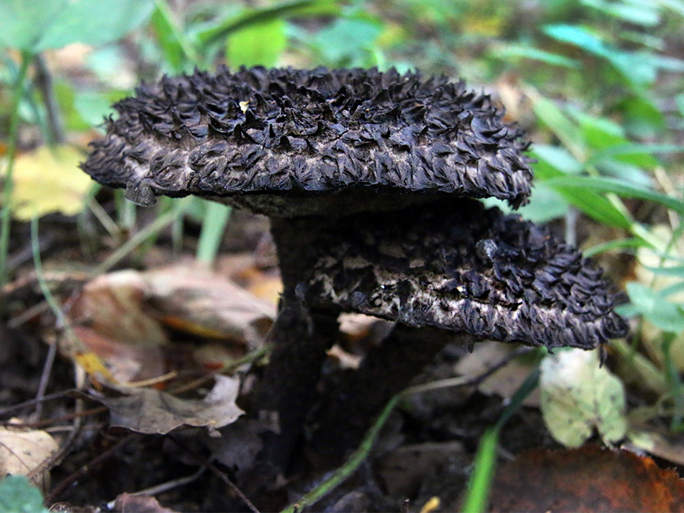 Summary. Old man of the woods – Strobilomyces strobilaceus. Distributed across Europe, Asia, North America, and Australia. It is common in temperate zone in Europe, but rare in hemiboreal. It is a very rare species in Latvia, currently known at two sites in the Kurzeme region – in and near the Ruņupe Valley and in the vicinity of Tārgale. The EOO is 258 km2, and the AOO – 16 km2. No information is available on the distribution changes due to a lack of research. There are insufficient data on the regional population size and changes. The number of mature individuals probably does not exceed 250. It is mycorrhizal with deciduous trees (oaks, beech), and found in deciduous and mixed forests, including old, undisturbed forests, on fertile soils. The main threat factors are related to forest management, which is reducing the proportion of old, mainly oak forests. It is assessed as Critically Endangered (CR) due to its very small regional population. It is a protected species in Latvia, for which micro-reserves can be established. Its legal status in Latvia must be maintained. Almost all localities are in or near a protected nature area – the “Ruņupes ieleja” Nature Reserve. Undisturbed broadleaved (oak) forests need to be protected for species conservation. Research is needed on the size, distribution and trends, life cycle and ecology of the Latvian regional population.