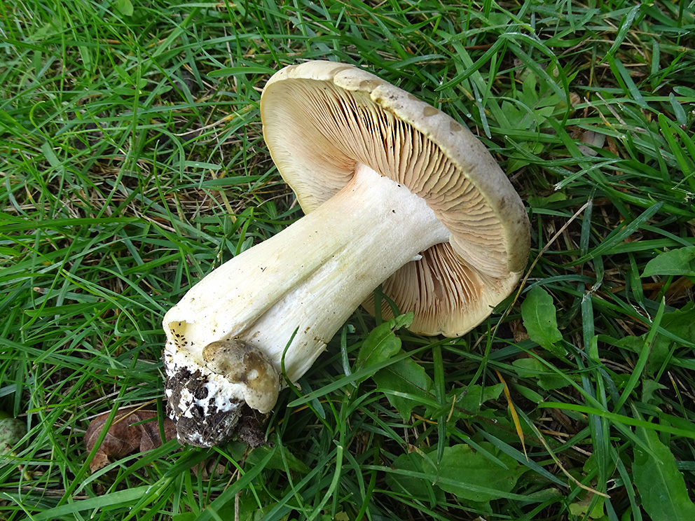 Summary. Livid pinkgill – Entoloma sinuatum. Found in Europe, Asia (Japan), North America, but very rare in South America and Africa. It is rare in Europe in the temperate and hemiboreal zones. It is rare in Latvia with six localities recorded in different regions by 2022. The EOO is 26,736 km2, and the AOO – 24 km2. Data on the regional population size and changes in Latvia are lacking. The number of mature individuals is probably less than 250. It is mycorrhizal with oak. It occurs in deciduous and mixed forests, especially oak forests. The main threat is a lack of suitable habitats; a decline in the proportion of oak woodland is expected. It is assessed as Endangered (EN) due to a low AOO area and a low number of mature individuals, the decline in AOO and habitat quality is predicted. The species is not listed as a species of EU importance and is not protected in Latvia. It is proposed to be included on the list of protected species. Half of the six known localities are in protected nature areas – the “Ežezers” and “Tebras ozolu meži” Nature Reserves, and the North Vidzeme Biosphere Reserve. The conservation measures are mainly related to the preservation of suitable habitats – deciduous (oak) forests. Further search for new localities of the species is necessary to clarify the regional population size and changes. Life cycle and ecology studies are also needed.