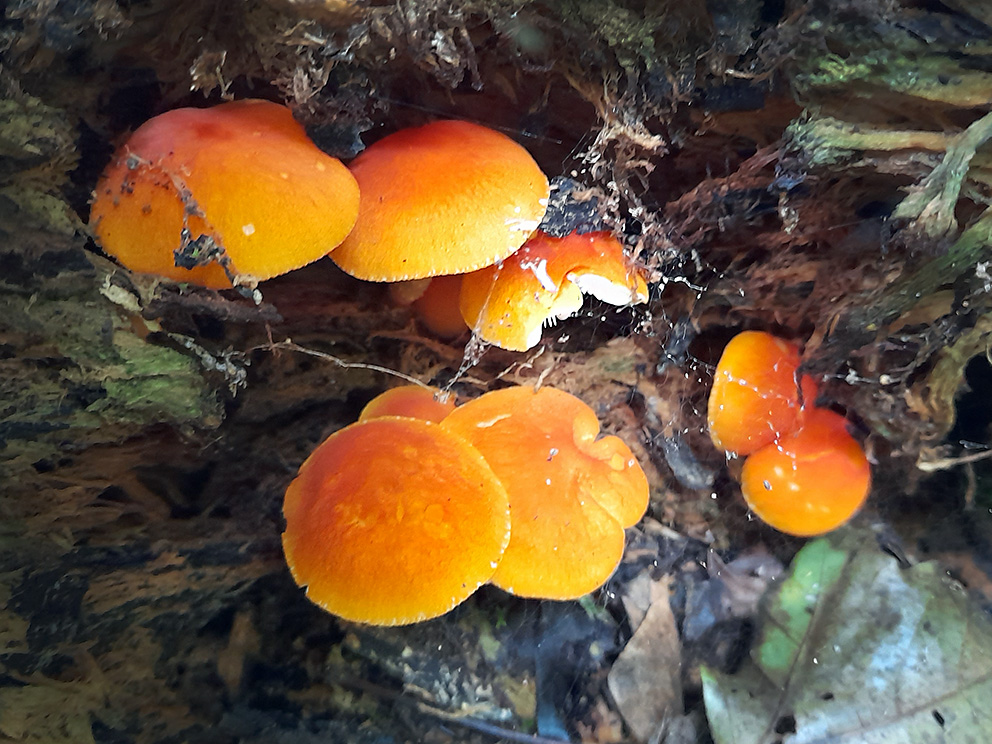 Summary. Flame shield mushroom – Pluteus aurantiorugosus. Distributed in Europe, North America, Asia, and New Zealand. It is very rare in Europe, especially in the temperate and hemiboreal zones. It is very rare in Latvia with five known localities in different regions of the country up to 2022. The EOO is 17,081 km2, and the AOO – 16 km2. There are insufficient data on the regional population size and changes. The number of mature individuals probably does not exceed 50. It is a wood saprotroph. In Europe, it grows in old forests on dead wood of deciduous trees (maple, ash, elm), and often in crevices and cavities at the base of living trees. The species’ distribution is affected by the removal of dead wood and by the decline in the proportion of old deciduous forests. It is assessed as Endangered (EN) due to its small, fragmented AOO and a low number of mature individuals, and a predicted possible decline in AOO. The species is not on the list of species of EU importance nor is it a protected species in Latvia. It is proposed to be included on the list of protected species in Latvia. One of the known localities is in a protected nature area – the Moricsala Strict Nature Reserve. The conservation of the species requires the preservation of dead wood in deciduous forests. Research is needed on the size, distribution and trends, life cycle and ecology of the Latvian regional population.
