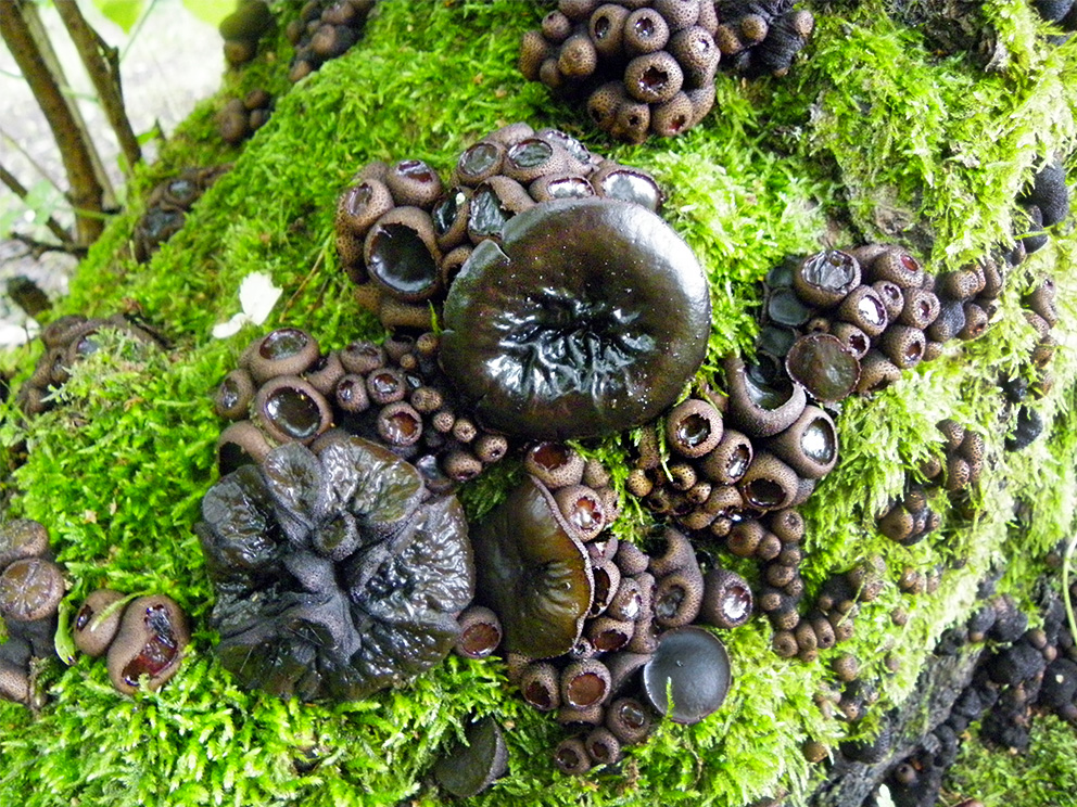 Summary. Black bulgar – Bulgaria inquinans. Distributed across Europe, North America, Asia, and New Zealand. In Europe, it is quite common in the hemiboreal and nemoral zones, but rare in Latvia. At present, 52 localities are known in different regions of the country. The EOO is 40,756 km2, and the AOO – 208 km2. No information is available on the distribution changes due to a lack of studies; insufficient data on the regional population size and changes. The number of mature individuals probably does not exceed 1,000. It is a wood saprotroph. In Europe, it is found in deciduous forests on standing or fallen dead wood, mainly oak, less commonly alder, birch or hornbeam. In Latvia, it is found in deciduous and mixed forests on dead wood, mainly on oak. The distribution of the species is influenced by the removal of coarse woody debris in broadleaved forests and old parks. It is assessed as Vulnerable (VU) due to a small regional population. The species is not listed as a species of EU importance and is not protected in Latvia. Legal conservation status is not required for it. It occurs in several protected nature areas: the Gauja and Ķemeri National Parks, the Moricsala Strict Nature Reserve, the “Tebras ozolu meži” Nature Reserve, etc. The conservation of the species requires the preservation of dead deciduous wood in forests, especially large logs. Studies on regional population size, distribution and trends, life cycle and ecology are needed.