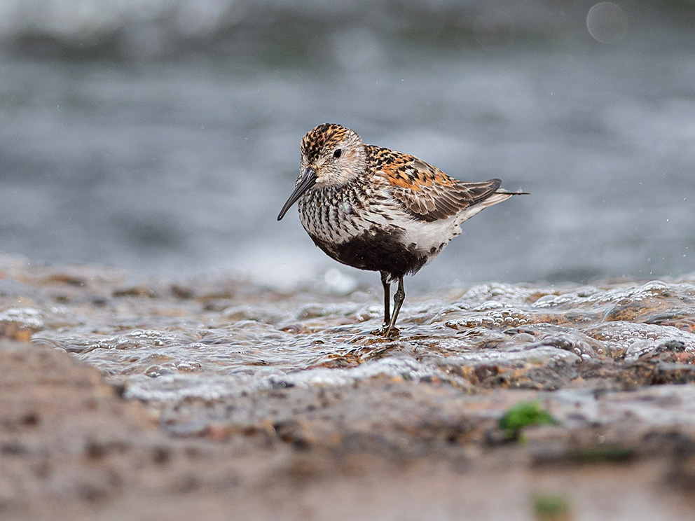 Summary. Dunlin − Calidris alpina. The species was mentioned as a rare breeder in the present-day territory of Latvia in the written sources on birds dating back to as early as the 19th and early 20th centuries. In the late 20th century, the breeding population was estimated at 1–5 pairs, while in the 21st century, breeding has no longer been recorded. The species used to breed in coastal grasslands and grasslands on the shores of coastal lakes. It is likely that the main cause of the disappearance of the species was habitat degradation through the overgrowth of coastal grasslands as a result of abandonment. The AOO of the migrating population is 712 km2, the EOO – 64,051 km2. The size of the population migrating through Latvia is unknown, but it is suspected to be less than 10,000 adult individuals. The population trend is also unknown. During transit, the species is mainly found along the sea coast, but it also occurs along inland water bodies. The species is threatened by the drainage of wetlands, peat extraction, cutting and burning of reeds, and abandonment of grasslands, which resulted in overgrowth with bushes and reeds, and oil spills. The species is sensitive to disturbance. The species is also susceptible to avian influenza virus and may suffer from future outbreaks of the disease. The legal status of protected species needs to be maintained in Latvia. Limiting of disturbances at staging sites is required to protect the species.