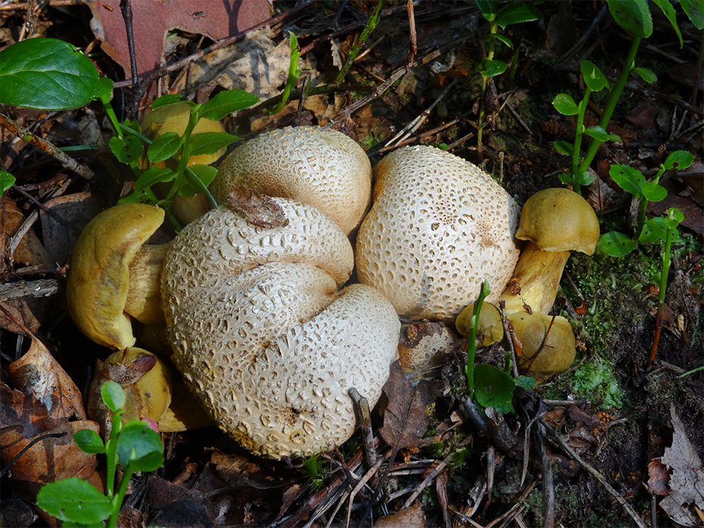 Summary. Parasitic bolete – Pseudoboletus parasiticus. Distributed in Europe and North America. It is rare in the temperate zone of Europe. It is rare in Latvia; currently five localities are known. The EOO is 1,983 km2, and the AOO – 24 km2. No information is available on the distribution changes due to a lack of studies; insufficient data on the regional population size and changes, but the sub-population on the island of Moricsala is considered stable. The number of mature individuals in Latvia is probably less than 250. It is both a mycorrhizal with pine and deciduous trees and a parasite (mycotroph) on Scleroderma spp. fungi. In Europe, it is found in old and natural wet mixed forests. It grows on S. citrinum mycelia under oaks. In Latvia, it is found in wet and boggy deciduous and mixed forests. In the vicinity of Riga, it can also be found on the edges of ditches in developed peat bogs. The species is threatened by forest management, which reduces the proportion of old forests. Around Riga, building development is altering habitats suitable for the species. It is assessed as Endangered (EN) due to a very small, fragmented regional population, which is predicted to decline. It is a protected species in Latvia for which micro-reserves can be established; the legal status of protection needs to be maintained. It occurs in the protected nature areas – the Ķemeri National Park, the Moricsala Strict Nature Reserve, the “Piejūra” Nature Park. There are also localities outside protected areas in the vicinity of Riga. The conservation of the species requires the preservation of wet forests with S. citrinum. Studies on the regional population size, distribution and trends, life cycle and ecology are needed.