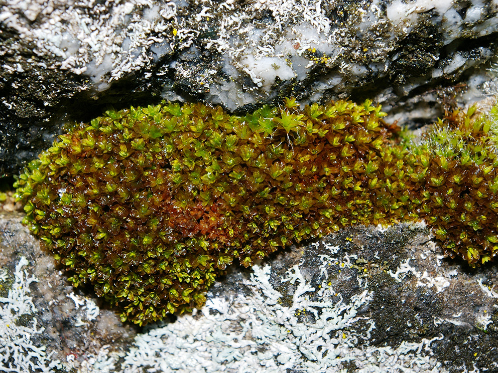 Summary. Water screw-moss – Syntrichia latifolia. The moss is widespread in Western and Central Europe, north to southern Scandinavia and eastern Ukraine, but very rare in Russia. It was first found in Latvia by B. Bambe in 1989. There are three known localities in Latvia – in Latgale, Kurzeme and Vidzeme. EOO is 19,046 km2, and AOO is 24 km2. In Latvia, the first locality that has been regularly surveyed is declining or even extinct due to drought and human activities, while the most recent localities are in natural habitats along rivers, where conditions are more favourable for the species and subpopulations are likely to be stable. The species grows in lowlands, mainly on periodically flooded tree bases and roots, but also on rocks, stones, concrete, walls and bridges. The species is threatened by drought, habitat change and conversion. It is assessed as Endangered (EN) due to its small EOO and predicted declines in the area and quality of suitable habitat, and in the number of mature individuals. A protected species in Latvia. The legal status of the species must be maintained. Found in protected nature territories – the “Kaučers” and “Ziemeļgauja” Protected Landscape Areas. Protection of the localities of the species and studies on the population size, distribution and trends should be carried out.