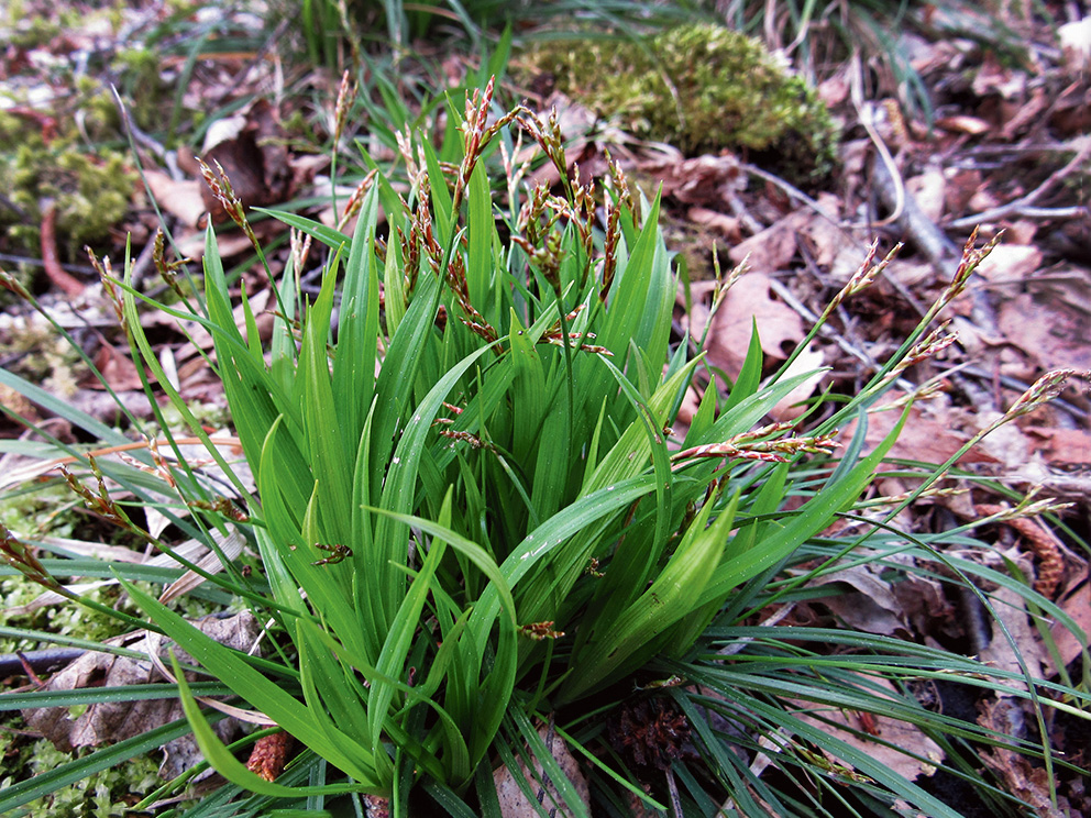 Morfoloģija un bioloģija. Daudzgadīgs, līdz 20 cm augsts lakstaugs ar īsu sakneni, veido nelielus cerus. Zvīņlapas un apakšējo lapu makstis brūnas līdz sarkanbrūnas. Lapas 2–3 mm platas. Ziedkopa dažādvārpu: viena augšējā vīrišķo ziedu vārpiņa, 2–3 apakšējās sievišķo ziedu vārpiņas. Visas vārpiņas pušķveidīgi satuvinātas stublāja galā. Pūslīšu plēksnes īsākas nekā pūslīši. Pūslīši 2,5–3 mm gari, ar īsiem, skrajiem, sarveidīgiem matiņiem, otrādi olveidīgi, knābītis ļoti īss, nedaudz noliekts. Auglis pūslītī ietverts rieksts. Zied maijā, jūnijā (Baroniņa 2001, 2003). Apputeksnē vējš. Vairojas ar sēklām un veģetatīvi (Durka 2002). Paaudzes ilgums ir 15 gadi (Solstad et al. 2021).