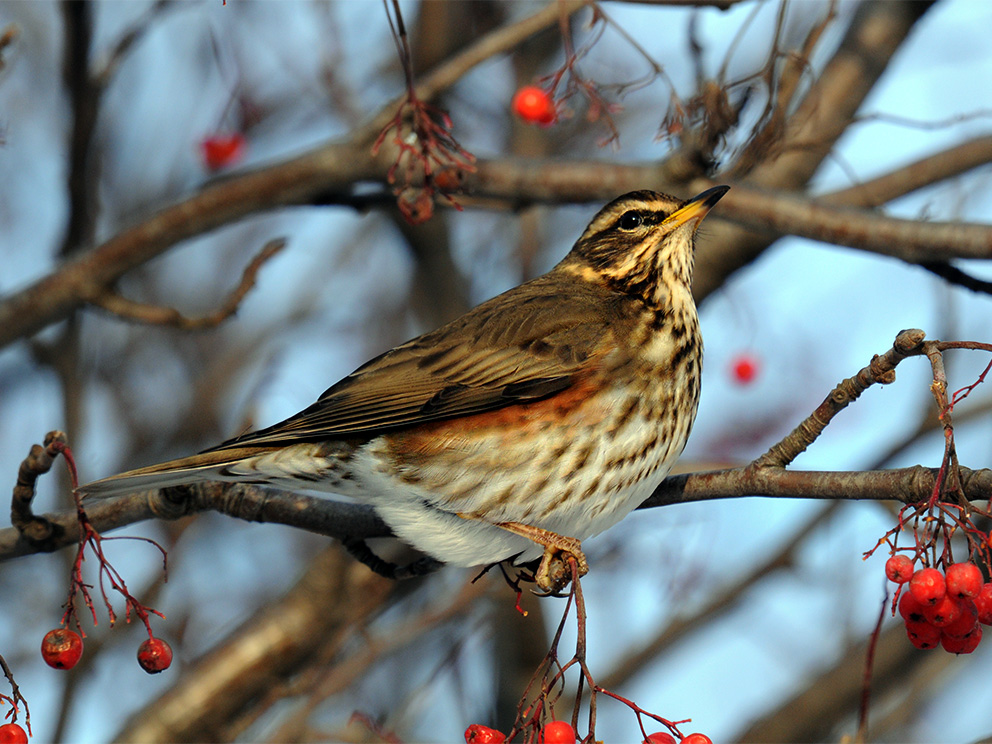 Summary. Redwing − Turdus iliacus. In Latvia, the distribution declined between 1980–1984 and 2000–2004; the decline continued between 2000–2004 and 2013–2017. The AOO of the breeding population is 3,540 km2, the EOO – 82,839 km2. The breeding population is estimated at 13,462–26,379 pairs (26,924–52,758 adult individuals). The long-term, as well as short-term population trend, is negative. The population has declined by 56% within ten years. The species inhabits various forests and, occasionally, parks and cemeteries. Climate change is most likely the main cause of population decline, but forestry activities, including logging during the breeding season, may pose an additional threat. Monitoring of the population of the species is ongoing. The species needs to be included on the list of protected species of Latvia. Suspension of logging during the breeding season needs to be observed to conserve the species.