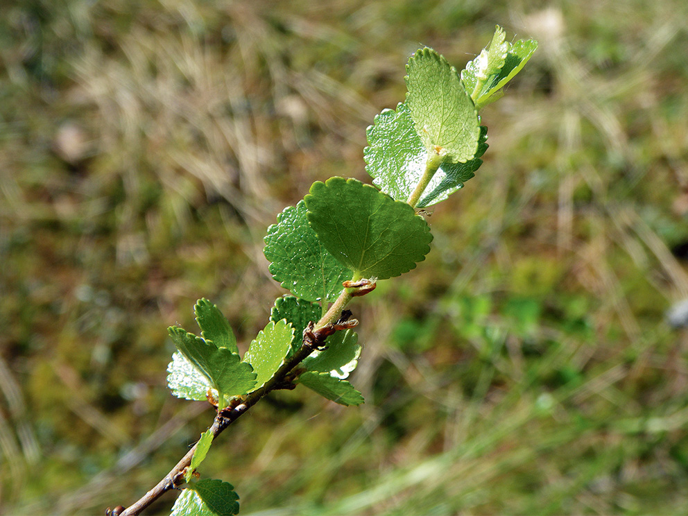 Morfoloģija un bioloģija. Vasarzaļš 0,3–1 (1,2) m augsts, blīvi zarots, klonāli augošs krūms. Zari pacili. Jaunie dzinumi tumšbrūni līdz sarkanbrūni, ar samtainu matojumu, pēc pāris gadiem kļūst kaili, spīdīgi. Lapas pamīšus, mazas, 0,5–1,5 cm garas, 1–2 cm platas, ieapaļas, bieži platums lielāks nekā garums, mala zobaina, ar noapaļotiem zobiņiem, virspuse tumšzaļa, spīdīga, apakšpuse gaišāka, kaila vai ar atsevišķiem matiņiem dzīslu stūros. Ziedi viendzimuma spurdzēs. Vīrišķo ziedu spurdzes 0,6–1,7 cm, sievišķo ziedu – līdz 1,2 cm garas, spurdzes seglapas trīsdaivainas, daivas augšupvērstas, ar matiņiem. Auglis – riekstiņš ar spārniem, kas 3–5 reizes šaurāki nekā riekstiņš. Zied aprīļa beigās un maijā, augļi nogatavojas septembrī, oktobrī (Cinovskis 2003; L. Strode, nepubl. dati).