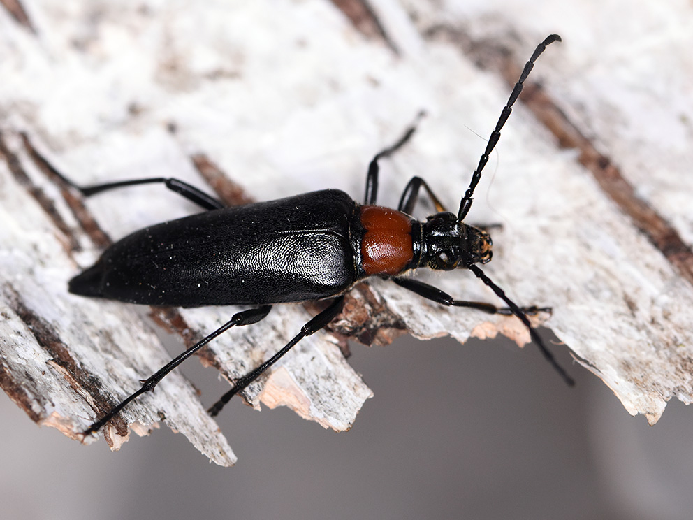 Summary. Longhorn beetle – Macroleptura thoracica. The species is widely distributed in Eurasia from Central Europe to Japan. Latvia is located in the north-western part of the distribution range. In Latvia, three localities are known, one in northern Kurzeme and two in eastern Vidzeme. The EOO is 7,539 km2, and the AOO is 12 km2. In Europe, the regional population of M. thoracica is declining. The status of the regional population in Latvia is unknown, but it has been concluded that the population is declining or will so in the future. The species is bound to old-growth mixed forests. Larvae develop in old, large (>25 cm in diameter) fallen or standing decaying deciduous trees, most often aspen, silver birch and small-leaved lime. The main threat is the decline of decaying wood in forests and the decline of old-growth aspen-, birch- and lime-dominated forest stands. In Europe, the species is assessed as Near Threatened (NT). In Latvia, M. thoracica it is assessed as Endangered (EN) because of the small AOO, the severely fragmented regional population and the continuous decline in the habitat area and the regional population. Therefore, it is necessary to preserve old-growth stands of aspen, silver beech and small-leaved lime, as well as preserve large-sized decaying wood in forests. Further studies on the distribution and the status and trends of the Latvian regional population need to be carried out. It is necessary to raise awareness of the public about the importance of decaying trees as a habitat for rare and endangered species. This is not a species of EU importance and is not protected in Latvia. It is proposed to include the species on the list of protected species in Latvia for which micro-reserves can be established. The species is known from two protected nature areas – in 1990 it was recorded in the “Moricsala” Strict Nature Reserve and in 2022 in the “Virguļicas meži” Nature Reserve.