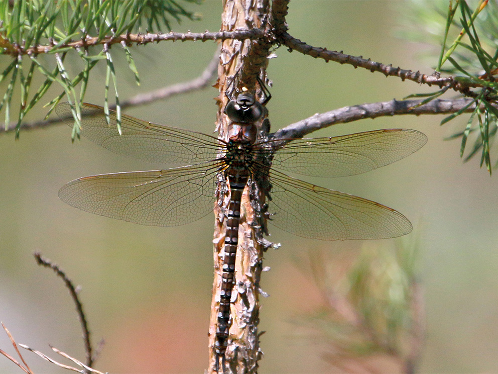 Summary. Siberian hawker – Aeshna crenata. Found in Eurasia, from north-eastern Europe to the Pacific coast of Asia, from the Kamchatka Peninsula to the southern Japanese Archipelago (GBIF 2022). In Latvia, the species has only been recorded in three water bodies in the south-eastern part of Latvia. The EOO is 1 km2, and the AOO – 8 km2. It is likely that the potential EOO and AOO are higher, considering the distribution of habitats occupied by the species. The current Latvian regional population size is estimated to be <250 individuals. The species inhabits nutrient-poor, acidic forest water bodies, where open water is surrounded by a zone of Sphagnum spp. with Carex spp. and other vegetation typical of transitional mires (Kalniņš 2017). Adult dragonflies mainly inhabit the littoral zone of water bodies, both above open water and the littoral vegetation, as well as the terrestrial part of the bank. Larvae live in the vegetation along the banks of the water body. Further declines in habitat quality are predicted due to intensive forestry, increased eutrophication and climate change (Kalniņš 2017). Eutrophication of water bodies is mainly attributed to the increased intensity of forestry activities near species habitats. Climate change may also contribute to negative changes in habitats. The species is assessed as Endangered (EN) due to its small EOO and AOO and a very small regional population. It is not listed as a species of EU importance and is not protected in Latvia. Given the habitat specificity, the rarity of the species and the correspondingly small regional population, it is proposed that A. crenata be included on the list of protected species and assigned to a category of micro-reserve species. Non-interference or individually assessed low-intensity forestry activities should be planned as a measure to reduce the threat. Studies on its distribution and abundance, as well as on its habitats and ecology are needed to improve its conservation.