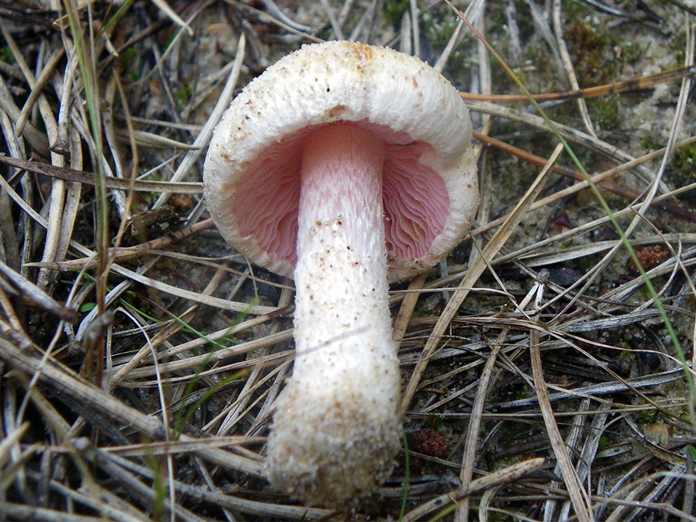 Summary. Sandy mushroom – Agaricus devoniensis. Occurs mainly in Europe, but also in North America, and Australia. It is rare in Europe and is mainly found in the nemoral and hemiboreal zones. It is very rare in Latvia. By 2022, it was found in five localities in Pierīga and western Latvia. The EOO is 7,965 km2, and the AOO – 20 km2. There’s no information available on changes in the distribution of the species due to a lack of studies. There is insufficient information on the regional population size and changes. The number of mature individuals in Latvia probably does not exceed 50. It is a soil saprotroph. It occurs in grey dunes, wooded coastal dunes, and sandy grasslands. The main threat is the impact of tourism and recreation on dune and coastal forest habitats, e.g. trampling and habitat transformation, as well as overgrowth of grey dunes. Assessed as Endangered (EN) due to low AOO and low numbers of mature individuals; declines in occupancy and habitat quality are expected. The species is not on the list of species of EU importance and is not protected in Latvia. It is proposed to be included on the list of protected species for which micro-reserves can be established. It is found in protected nature areas – the “Piejūra” Nature Park, and the “Ovīši” and “Ziemupe” Nature Reserves. The conservation measures are mainly related to the preservation of suitable habitats – grey dunes and wooded dunes. Research is needed on the size, distribution and trends, life cycle and ecology of the Latvian regional population.