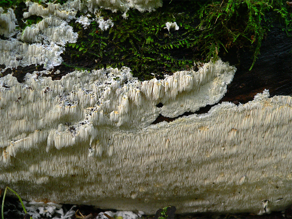 Summary. Fragile toothcrust – Dentipellis fragilis. Occurs in Europe, Asia, and eastern North America. In Europe, it is found in the nemoral and hemiboreal zones, but very rarely in the boreal zone. 78 localities are known in different regions in Latvia. The EOO is 49,426 km2, and the AOO – 312 km2. There are insufficient data on the size and changes of the regional population. The number of mature individuals is about 700. The species is usually found in moist and shady deciduous forests with a ground cover rich in herbs. In Latvia, it can be found in a wide variety of habitats, provided that the substrate and structures required by the species are present, as well as a suitable microclimate. It grows on dead deciduous wood, causing white rot, and can grow on the same log for several years. Usually found on aspen, maple, bird cherry, rowan, preferring relatively large logs. The species is mainly threatened by the removal of dead wood from deciduous forests, clear-cutting, and changes in microclimate due to forest drainage. It is assessed as Vulnerable (VU) due to its very small regional population. The species is not listed as a species of EU importance and is not protected in Latvia. The legal status of the species does not need to be changed. A small part of the regional population is found in protected nature areas, e.g. the “Kupravas liepu audze”, “Vjadas meži”, and “Dvietes dumbrāji” Nature Reserves. The conservation measures are mainly related to the preservation of suitable habitats (shady, moist forests with deciduous trees). Research is needed on the species’ distribution, ecology and threats.