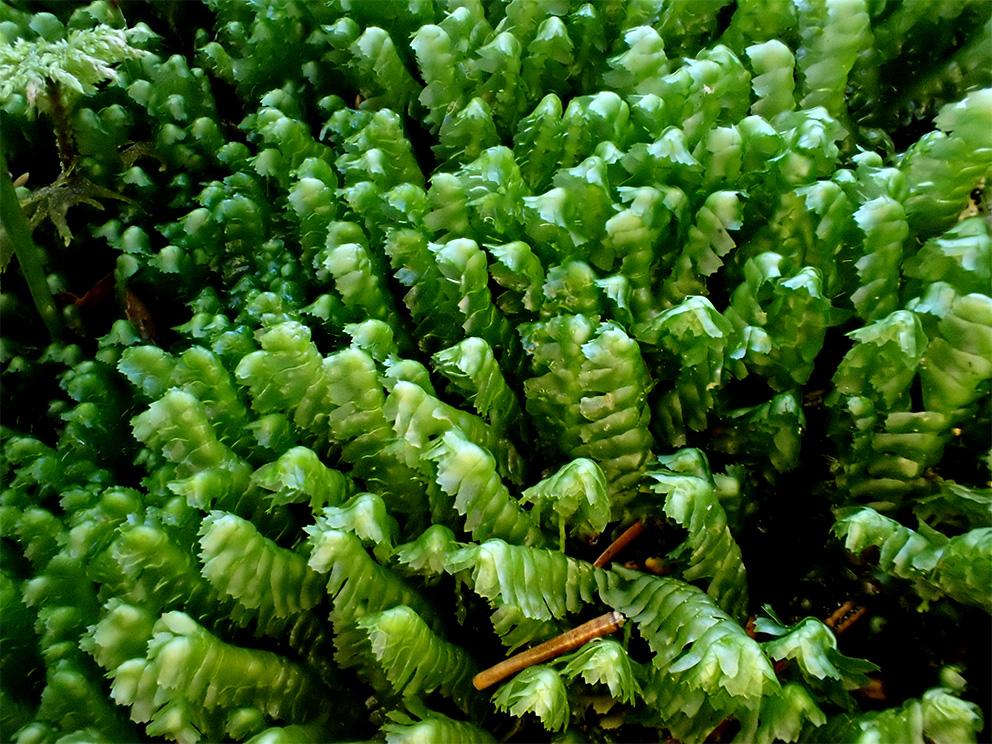 Biotopi un ekoloģija. Suga saistīta ar ēnainiem, mitriem skujkoku mežiem skābās augsnēs, arī rietumu ozolu mežiem, kur vietām tā var dominēt sūnu stāvā. Aug arī mežainās ganībās, tostarp uz kritalām un smilšakmeņu klintīm ēnainās ielejās. Latvijā suga saistīta galvenokārt ar egli, bērzu, melnalksni auglīgos, mitros skujkoku mežos un staignājos. Suga atrasta zemsedzē, ciņos, uz koku pamatnēm un virszemes saknēm, kā arī uz trupošas koksnes, retāk uz smilšakmens atsegumiem. Pavadošās sugas ir slotiņu divzobe Dicranum scoparium, lielā dižspuraine Hylocomiadelphus triquetrus, spīdīgā stāvaine Hylocomium splendens, ložņu zvīņlape Lepidozia reptans, kailā apaļlape Odontoschisma denudatum, lielā greizkausīte Plagiochila asplenioides, Girgensona sfagns Sphagnum girgensohnii, piecrindu sfagns Sphagnum quinquefarium, tūbainā bārkstlape Trichocolea tomentella (A. Opmaņa, A. Āboliņas, B. Bambes, I. Rērihas, J. Klušas novērojumi). Dabisko mežu specifiskā suga (Auniņš 2013).