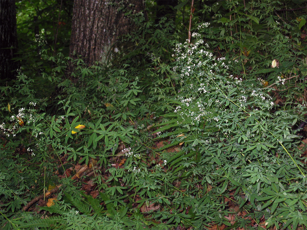 Dzīvotnes un ekoloģija. Tā aug galvenokārt mēreni mitrās, vidēji skābās līdz vāji bāziskās, barības vielām vidēji bagātās augtenēs, daļēji noēnotās vietās (Tichý et al. 2023). Latvijā suga sastopama dažādos jauktos un lapu koku mežos bagātos augšanas apstākļos, tai raksturīgās dzīvotnes ir veci jaukti platlapju meži, nogāžu un gravu meži, lakstaugiem bagāti egļu meži, kā arī aluviāli krastmalu un palieņu meži. Dabisko meža biotopu specifiskā suga (Auniņš 2013).