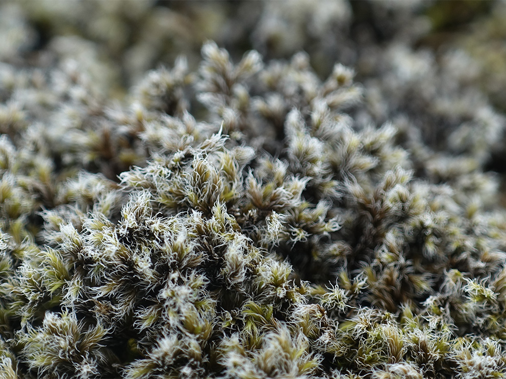 Summary. Woolly fringe-moss – Racomitrium lanuginosum. A widespread moss in Europe north to the Arctic, with montane occurrences further south. It was first found in Latvia by N. Malta in 1914. Recently found mainly in northern Kurzeme, very rarely also in Vidzeme and Latgale. EOO is 4,703 km2, and AOO is 36 km2. In Latvia, the size and trends of the regional population of the species is unknown, but subpopulations are to be described as stable. In Latvia, the species occurs on boulders in habitats characterized by elevated air humidity, such as wet meadows, extensive raised bogs, and coastal areas. Across Europe, its suitable habitats are threatened by overgrazing, soil acidification, nitrogen deposition, and shrub encroachment. It is assessed as Near Threatened (NT) as subpopulations of the species are currently stable, but the situation may change if more localities are destroyed and the area occupied by the species declines. A protected species in Latvia. To protect its habitats, the possibility to create micro-reserves should also be considered. The species has been found in protected nature territories – the Teiči Strict Nature Reserve and the Slītere National Park. Protection of the species’ localities should be ensured and studies on the dynamics of the population should be carried out.