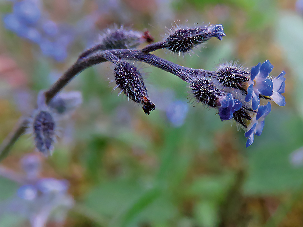 Morfoloģija un bioloģija. Viengadīgs, līdz 25 cm augsts lakstaugs, viss augs ar matiņiem. Stublājs stāvs, vienkāršs vai zarots. Lapas pamīšus, veselas, sēdošas, 1–3 cm garas, iegarenas līdz lancetiskas. Ziedi sīki, skrajos rituļos. Ziedkopa pie pamata bez lapām. Kauslapas un vainaglapas piecas, saaugušas. Vainags gaišzils, apmale 2–2,5 mm plata. Augļa kāts vienādā garumā ar kausu vai nedaudz garāks. Skaldauglis sadalās četros riekstiņos. Riekstiņi bez piedevas. Zied maijā, jūnijā. Aug nelielās, skrajās grupās (Cepurīte 2003). Apputeksnē kukaiņi, taču ir arī pašappute. Vairojas tikai ar sēklām (Durka 2002). Sēklas izplata vējš. Vidējais sēklu izplatīšanās attālums 0,1–1 m (Lososová et al. 2023).