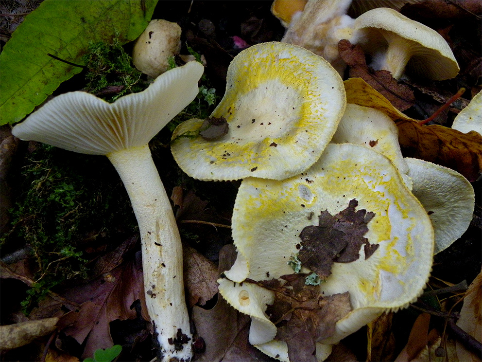 Summary. Gold flecked woodwax – Hygrophorus chrysodon. Found in Europe, North America, and some parts of Asia, and Africa. It is rare in Europe in the temperate and southern boreal zones. It is very rare in Latvia; known to be present in three localities in different regions of the country. The EOO is 8,019 km2, and the AOO – 12 km2. No information is available on changes in the distribution due to a lack of studies. There are insufficient data on the regional population size and changes. The number of mature individuals is probably less than 50. It is mycorrhizal with deciduous trees (beech, oak, hazel, lime), but rarely with conifers. In Latvia, as in other parts of Europe, it occurs in deciduous forests and also in old parks. A lack of suitable habitats, the removal of old living trees, clear-cutting, and a decline in the proportion of old forests affect the distribution of the species. In parks, the species’ distribution is negatively affected by park management, i.e. too frequent mowing or mowing cessation. It is assessed as Endangered (EN) due to low AOO and a low number of mature individuals with a possible decline in AOO predicted. The species is not listed as a species of EU importance and is not protected in Latvia. It is proposed to be included on the list of protected species. It occurs in the Gauja National Park; other localities are outside protected areas. The main conservation measures: preservation of old deciduous forests, species-appropriate management of old parks, e.g. avoiding mowing or trampling at the time when young fruiting bodies are forming, thus preventing spores from maturing. Research is needed on the size, distribution and trends of the Latvian regional population, life cycle and ecology, and trends in habitats suitable for the species.