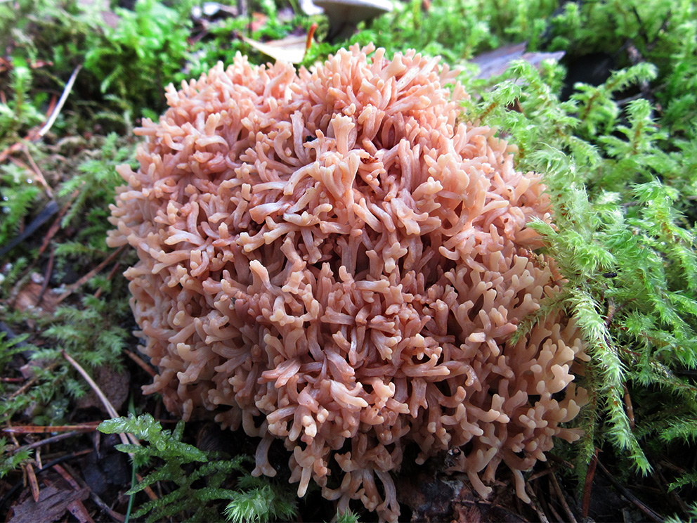 Summary. Northern coral – Ramaria boreimaxima. Found only in Europe in its boreal zone. It is very rare in Latvia; by 2022, four localities are known, all in the Kurzeme region. The EOO is 1,082 km2, and the AOO – 16 km2. There are insufficient data on the regional population size and changes. The number of mature individuals probably does not exceed 50. A forest litter saprotroph, which occurs in coniferous forests, mainly pine and rarely spruce forests, on sandy soils. The distribution of the species is affected by forestry activities such as logging. It is assessed as Critically Endangered (CR) due to its very small regional population. The species is not included on the list of species of EU importance or the national list of protected species. It is proposed to be included on the list of protected species and assigned to a category of micro-reserve species. Two localities are in the protected nature areas – the “Ances purvi un meži” Nature Reserve. The conservation of the species requires the preservation of suitable habitats – undisturbed forests. Studies on the regional population size, distribution and trends, life cycle and ecology are needed.