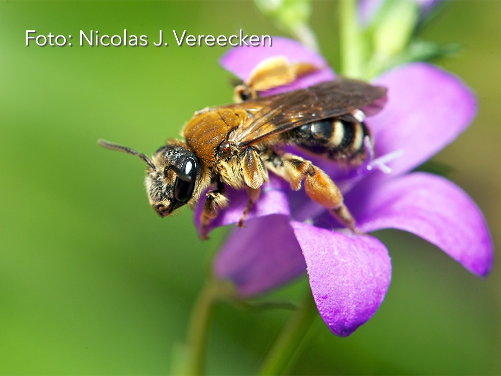 Biotopi un ekoloģija. Suga saistīta ar pļavām, mežmalām, izcirtumiem un līdzīgiem biotopiem, kuros aug Campanula ģints pulkstenītes, galvenokārt dižā pulkstenīte C. persicifolia un apaļlapu pulkstenīte C. rotundifolia, kas ir šīs sugas galvenais un praktiski vienīgais nektāraugs. Ligzdas veido augsnē – sausās, saulainās nogāzēs (Amiet et al. 2010; SLU Artdatabanken 2022). Suga Latvijā konstatēta tikai pamestā karjerā Tērvetes apkārtnē.